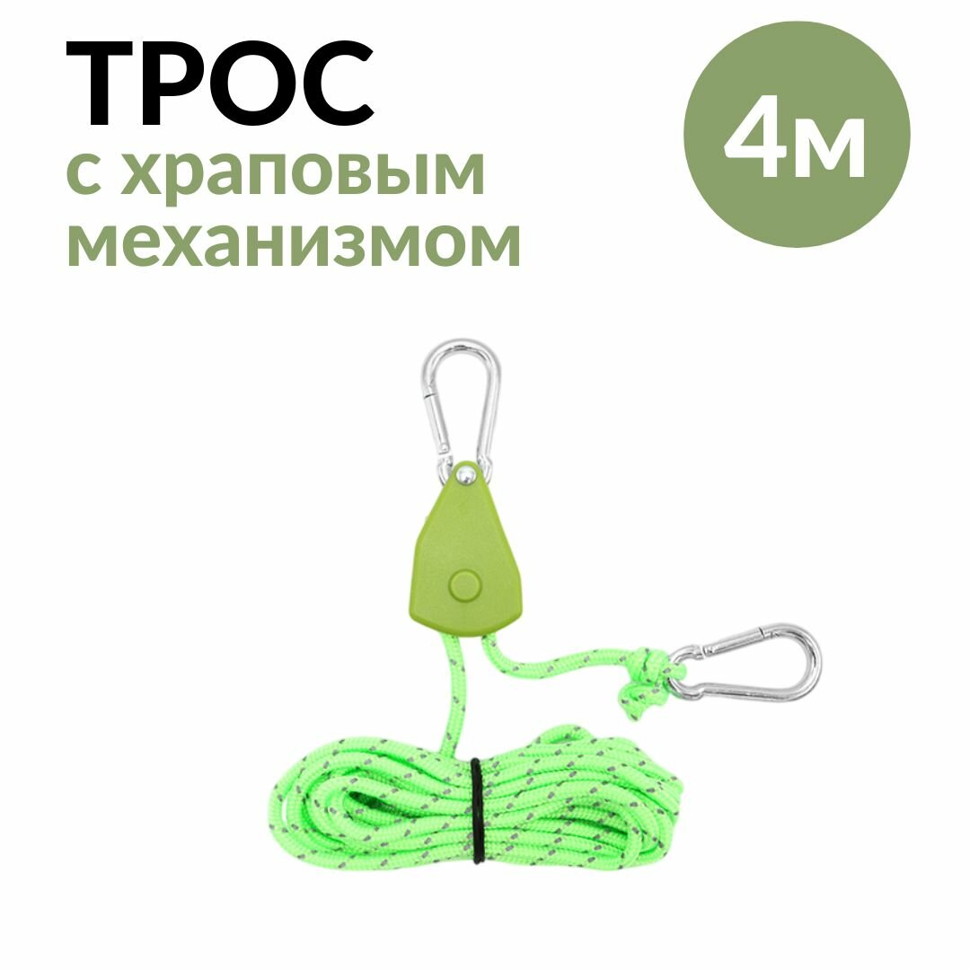 Трос 4 метра с натяжителем с храповым механизмом для шатра, палатки, навеса, тента, зеленый интересное: