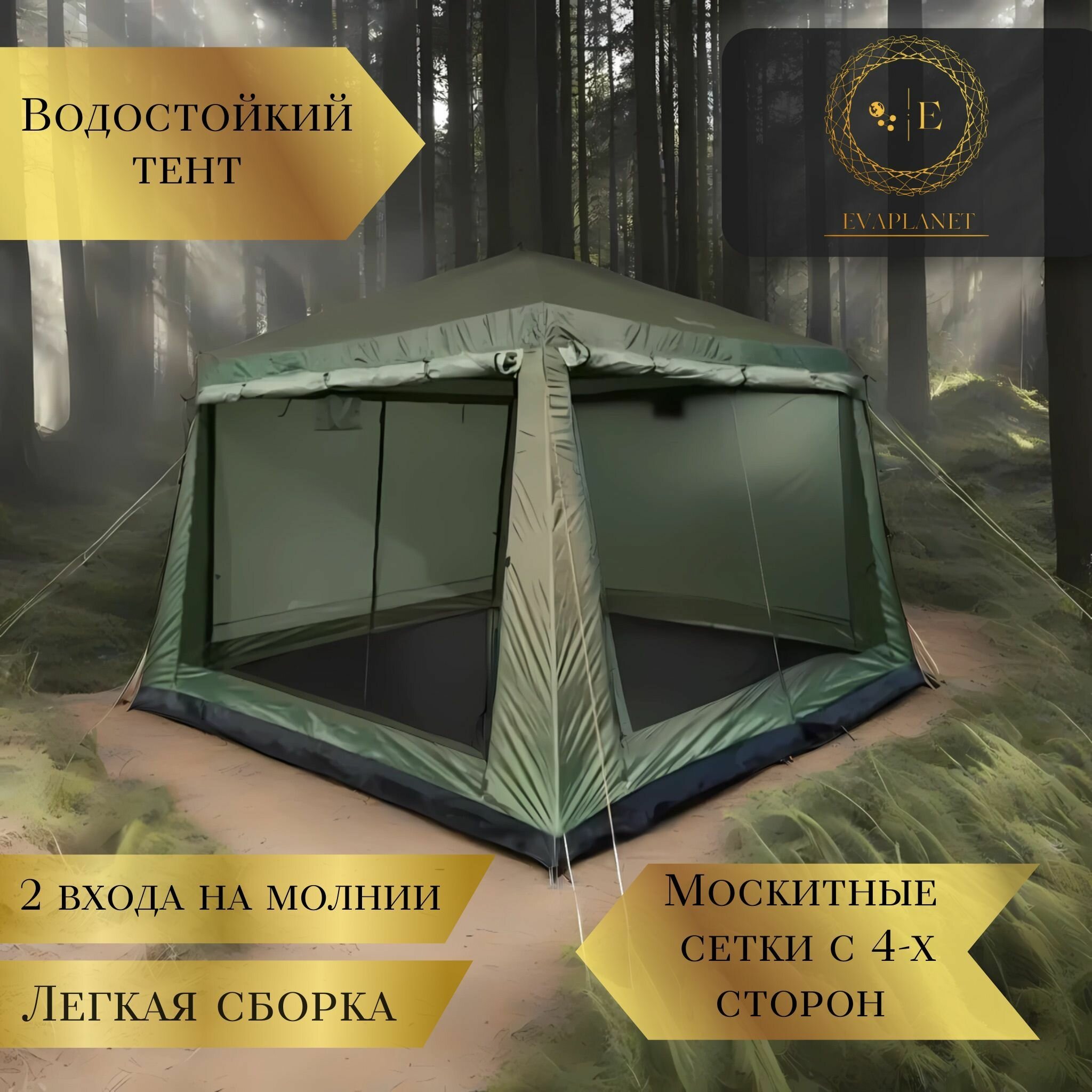 Палатка-шатер-кухня ветрозащитная юбка усиленный каркас 2 входа 4 москитные сетки EVAPLANET 1628D интересное: