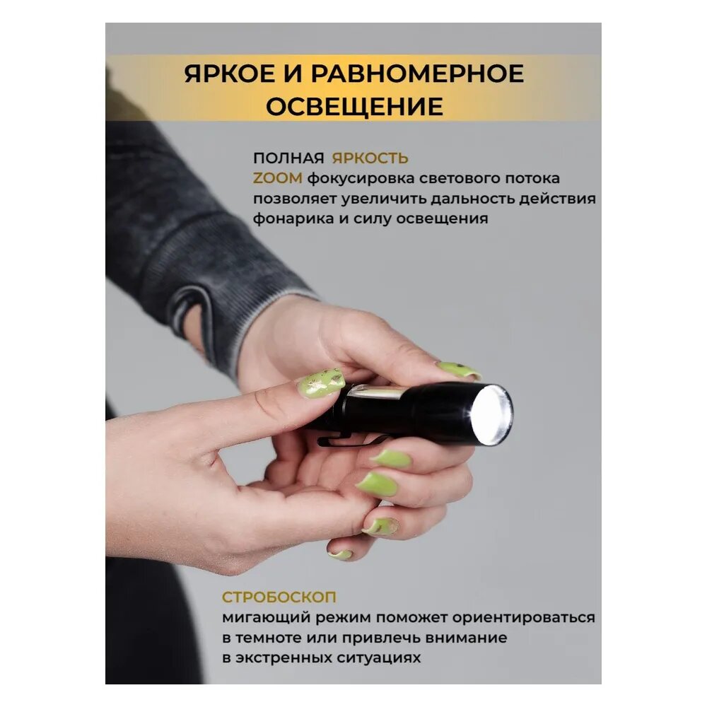 Фонарик аккумуляторный светодиодный с зумом интересное: