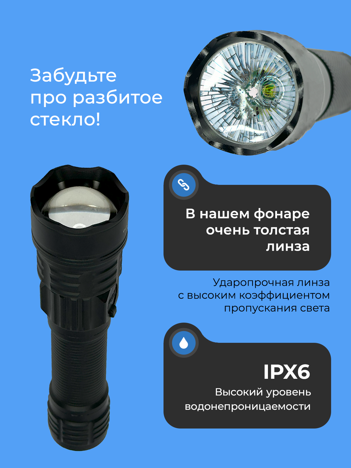 | Особенности | влагозащита / зарядное устройство / клипса для крепления / регулировка угла свечения / ударопрочный корпус / холодный белый свет |