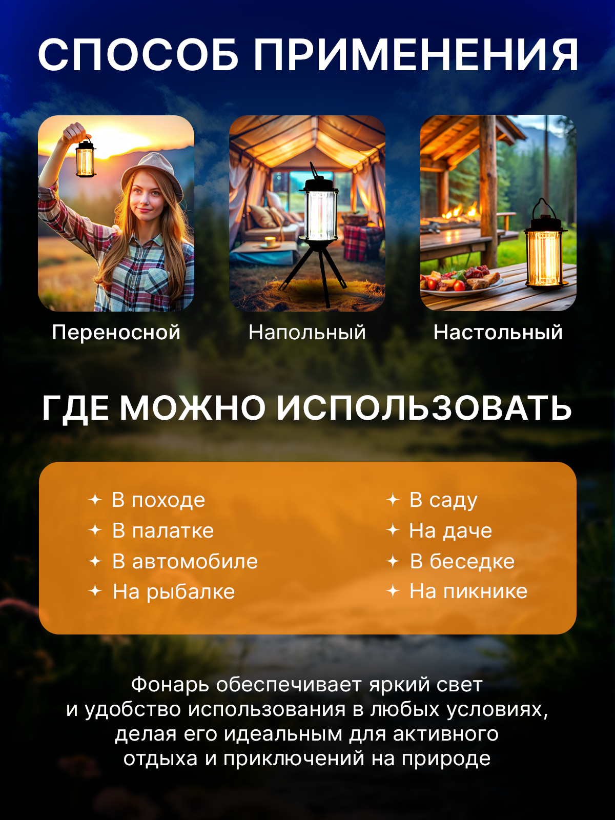 Фонарь аккумуляторный кемпинговый подвесной на триноге светодиодный с пауэрбанком интересное: