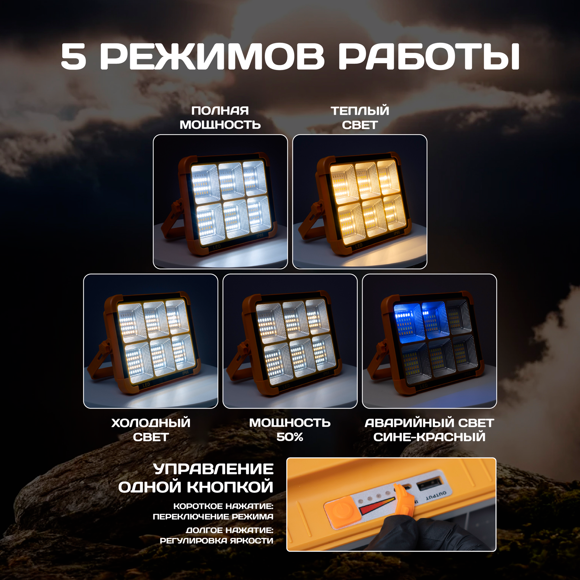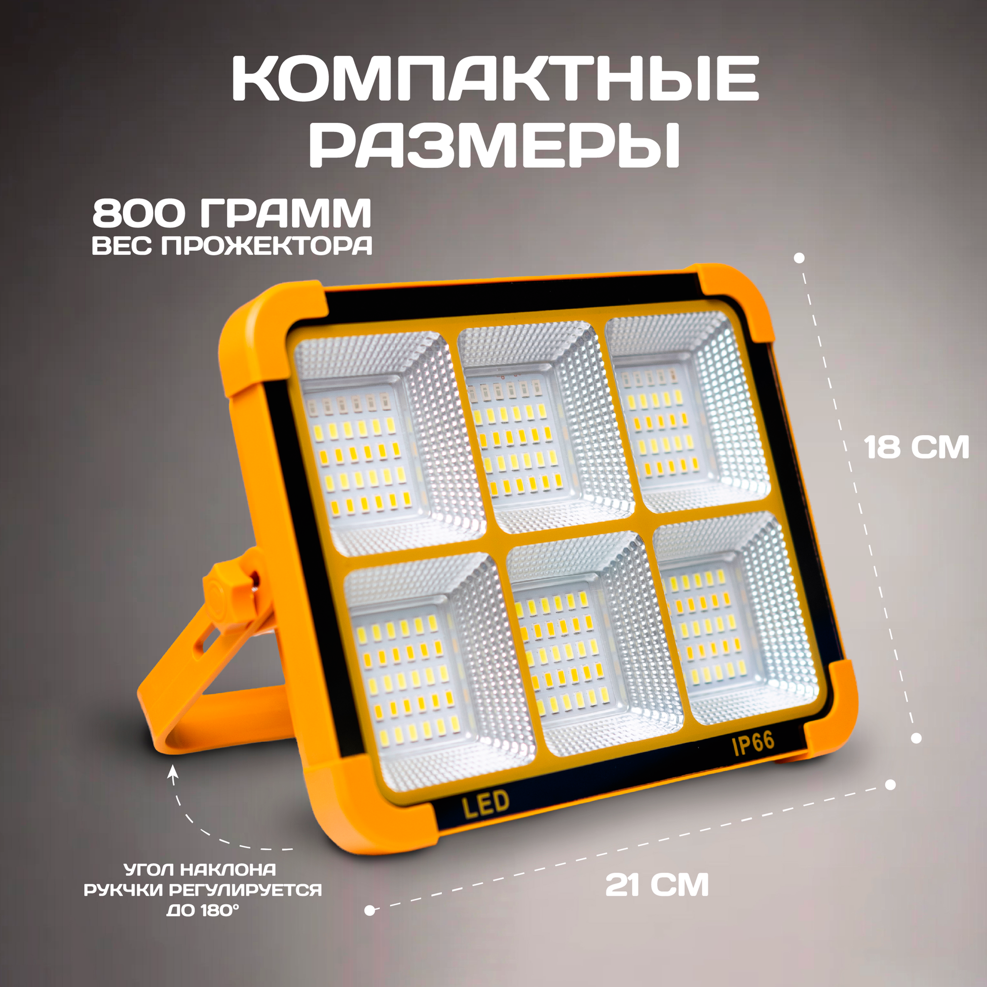 Светодиодный фонарь прожекторный, аккумуляторный многофункциональный IP54 15W