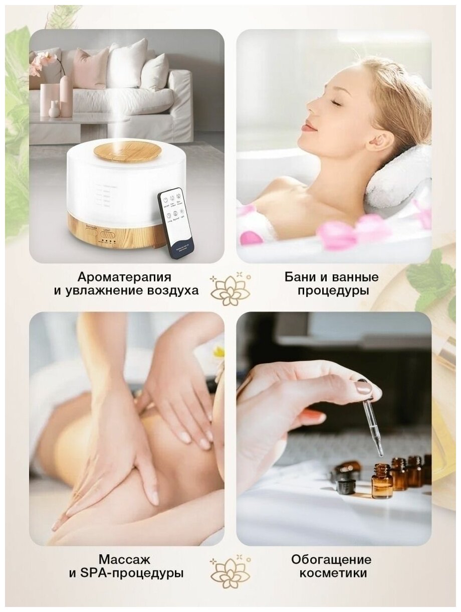| Способ применения | Для ароматерапии, диффузор , аромалампы, увлажнителей воздуха, кожи, волос, лица и тела, бани, сауны, ванны, массажа, йоги и авто ароматизаторов |