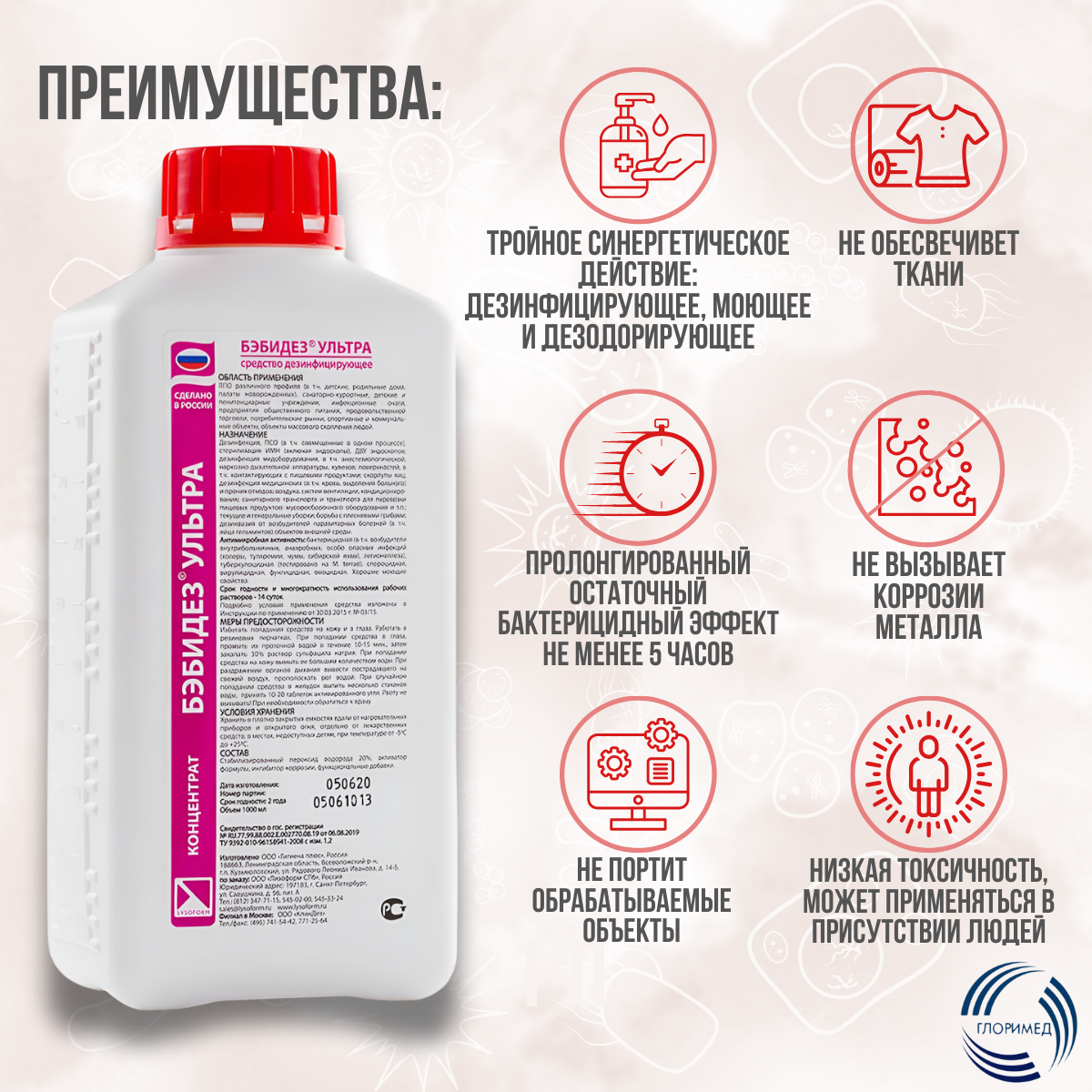 Купить БэбиДез Ультра 1 л возможна дезинфекция эндоскопов