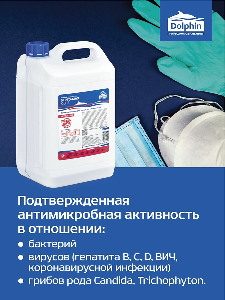 Профхим антисептик кожный д/дезинфекции рук Dolphin/Септо-Макс К002, 5л, 1241722 интересное: