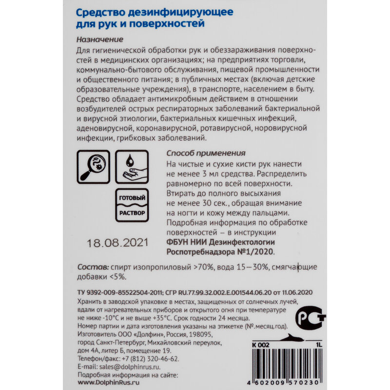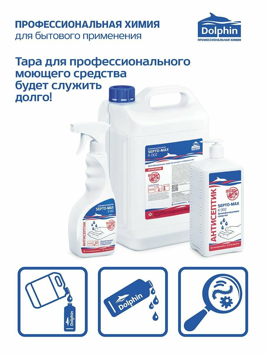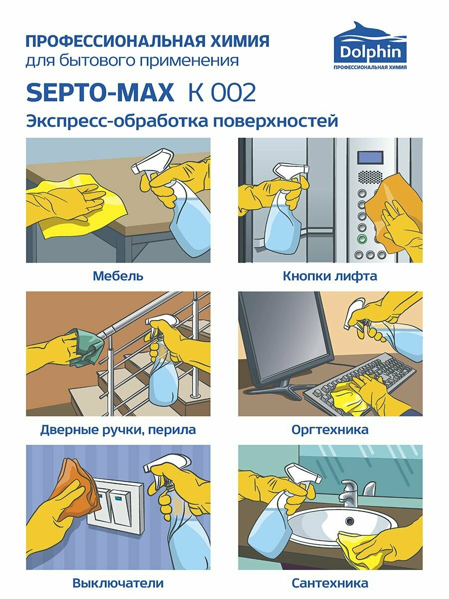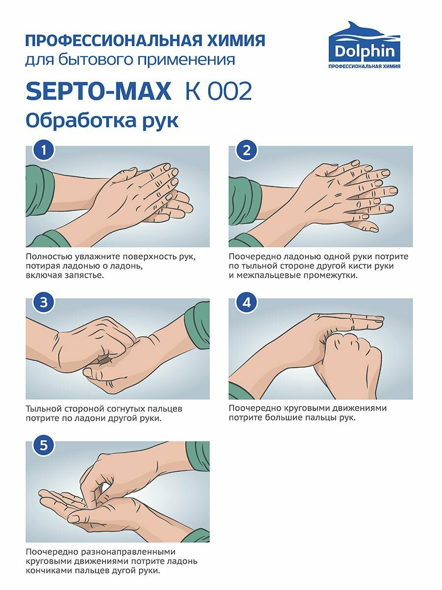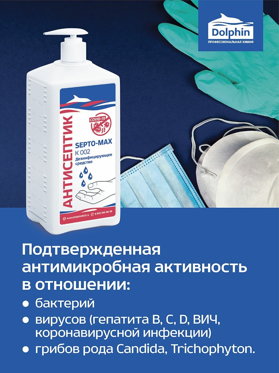 Антисептик для рук Dolphin Septo-Max К 002 1 л с помповым дозатором, 1107182 интересное:
