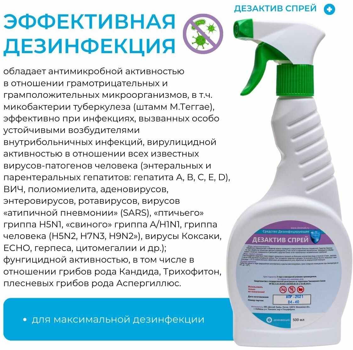Дезактив Спрей для дезинфекции поверхностей 0,75 л интересное: