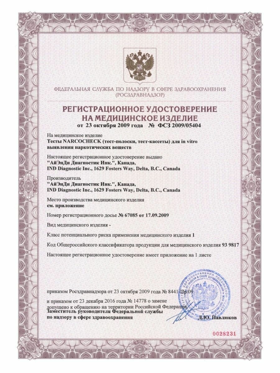 | Состав | мультипанель на 5 видов наркотических веществ, пипетка для нанесения пробы мочи |