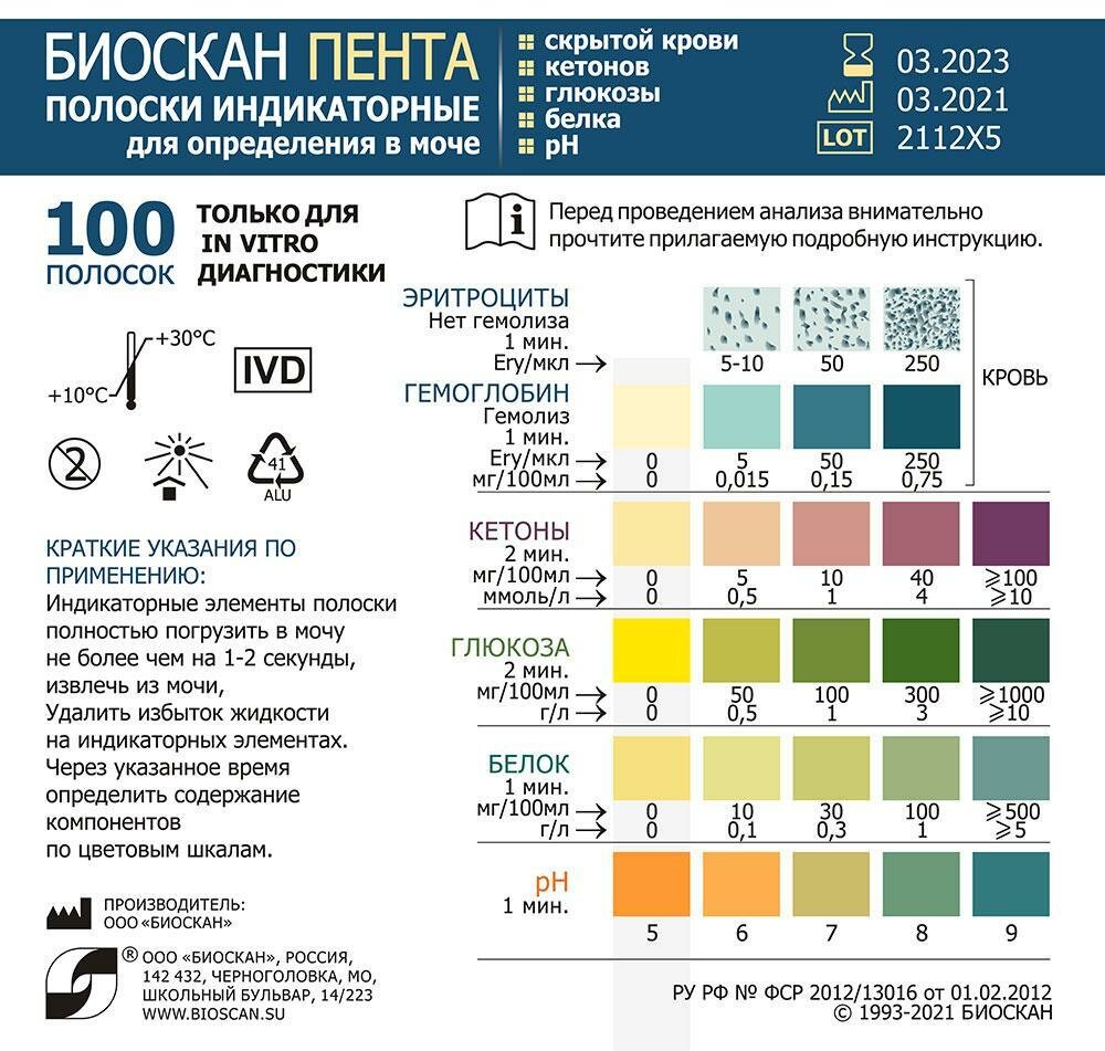 Биоскан — пента Полоски индикаторные для определения скрытой крови, кетонов, глюкозы, белка, рН в моче 50 шт./уп. интересное: