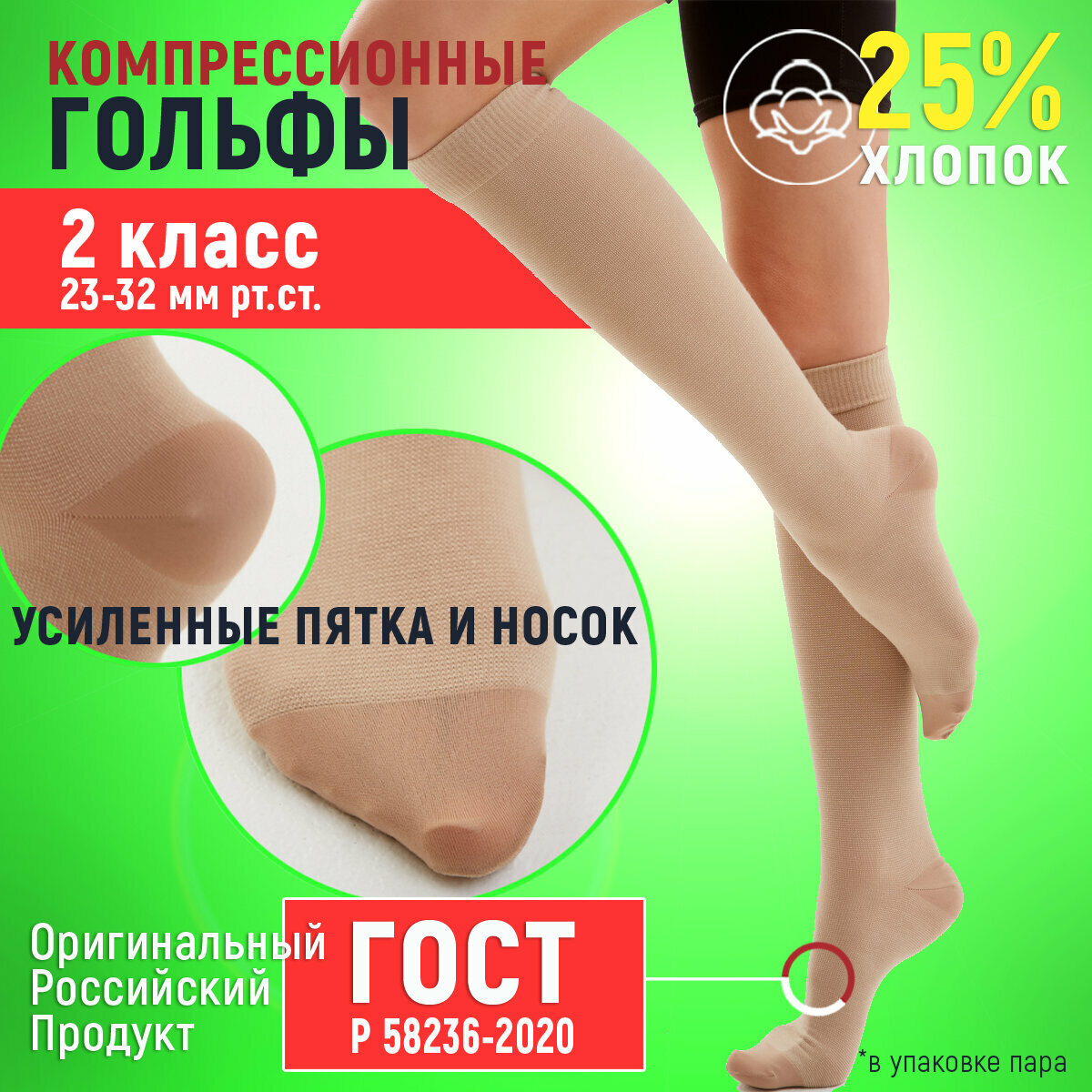 Купить Чулки компрессионные до колена (гольфы) 2 класс компрессии закрытый мысок, кремовые, 2 размер
