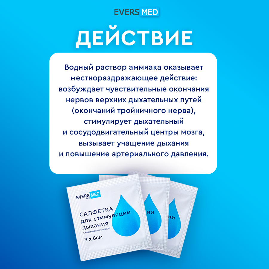 Салфетки с нашатырным спиртом EVERS Life для стимуляции дыхания 3х6 см, 20 шт интересное: