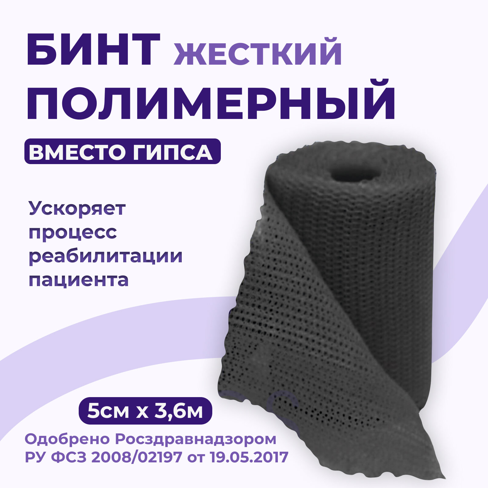 Бинт полимерный гипсовый медицинский INTRARICH CAST жесткой фиксации 5,0 см х 3,6 м фиолетовый