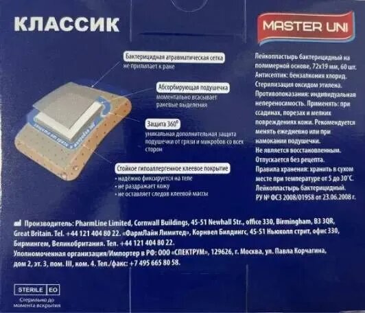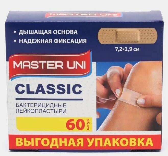 Master Uni лейкопластырь бактерицидный 60 шт, 1.9 х 7.2 см интересное: