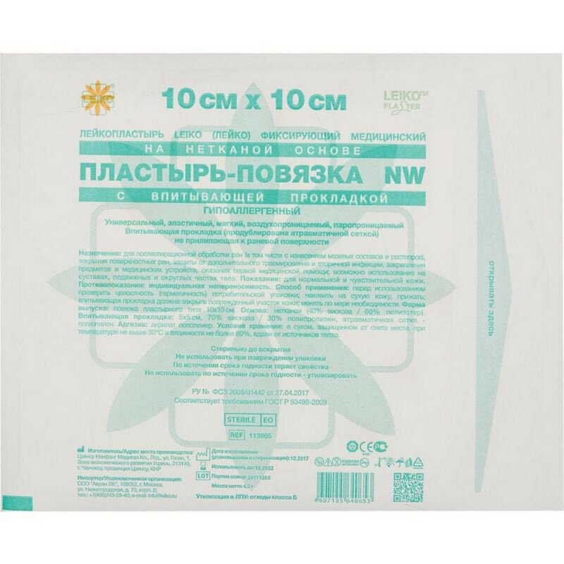 Пластырь-повязка LEIKO 10см х 10см, нетканая основа с прокладкой, 50 шт интересное: