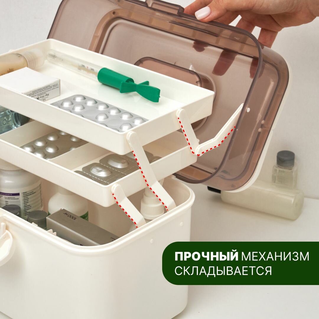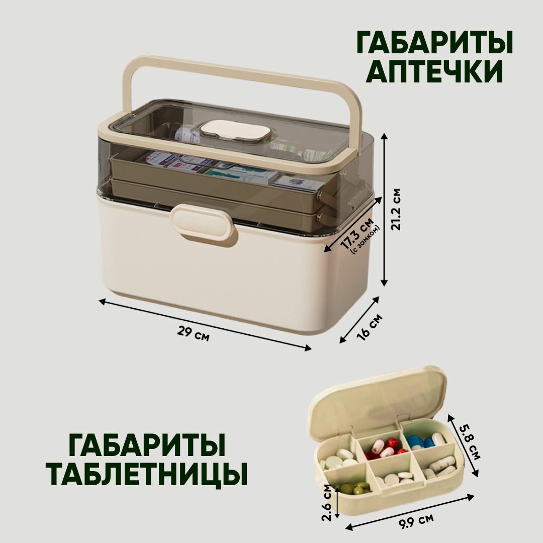 Органайзер для лекарств Oqqi, аптечка домашняя, пластик, белый, 16х21.2х29 см интересное: