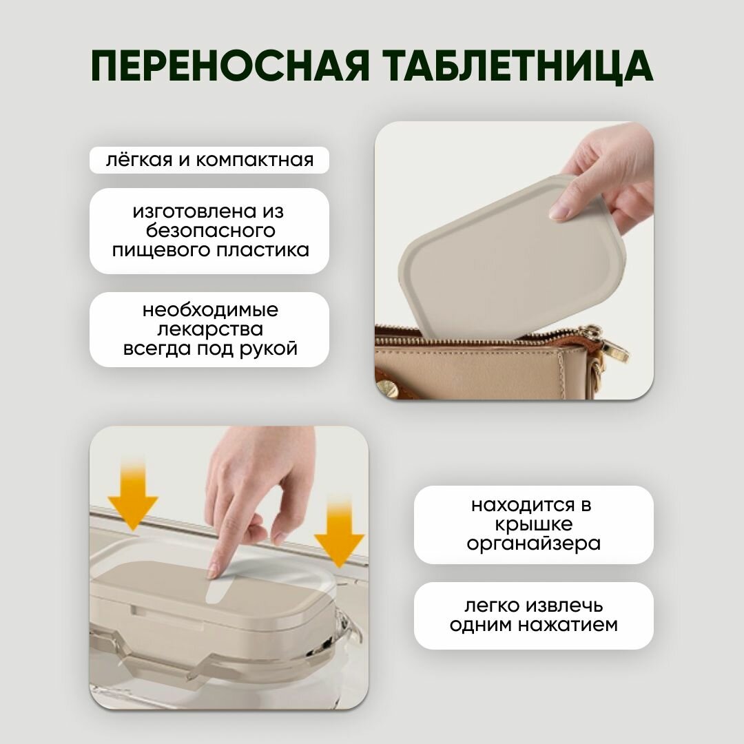 Органайзер для лекарств Oqqi, аптечка домашняя, пластик, белый