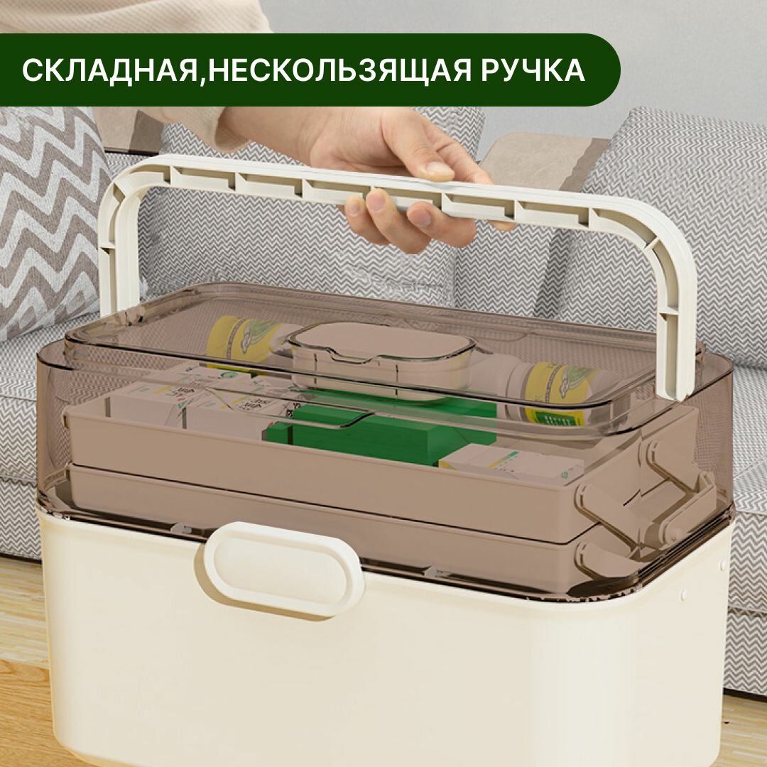 Органайзер для лекарств Oqqi, аптечка домашняя, пластик, 38х27.1х21.5 см, большой контейнер для лекарств