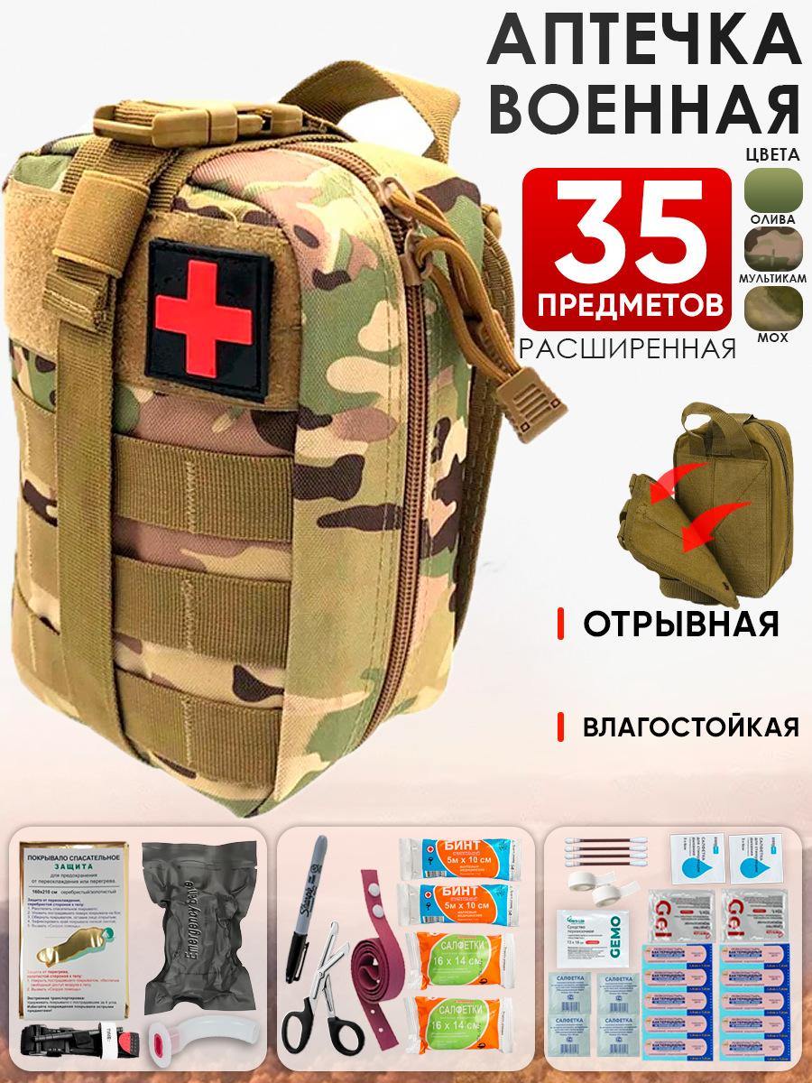 Купить Аптечка тактическая укомплектованная 35шт мультикам
