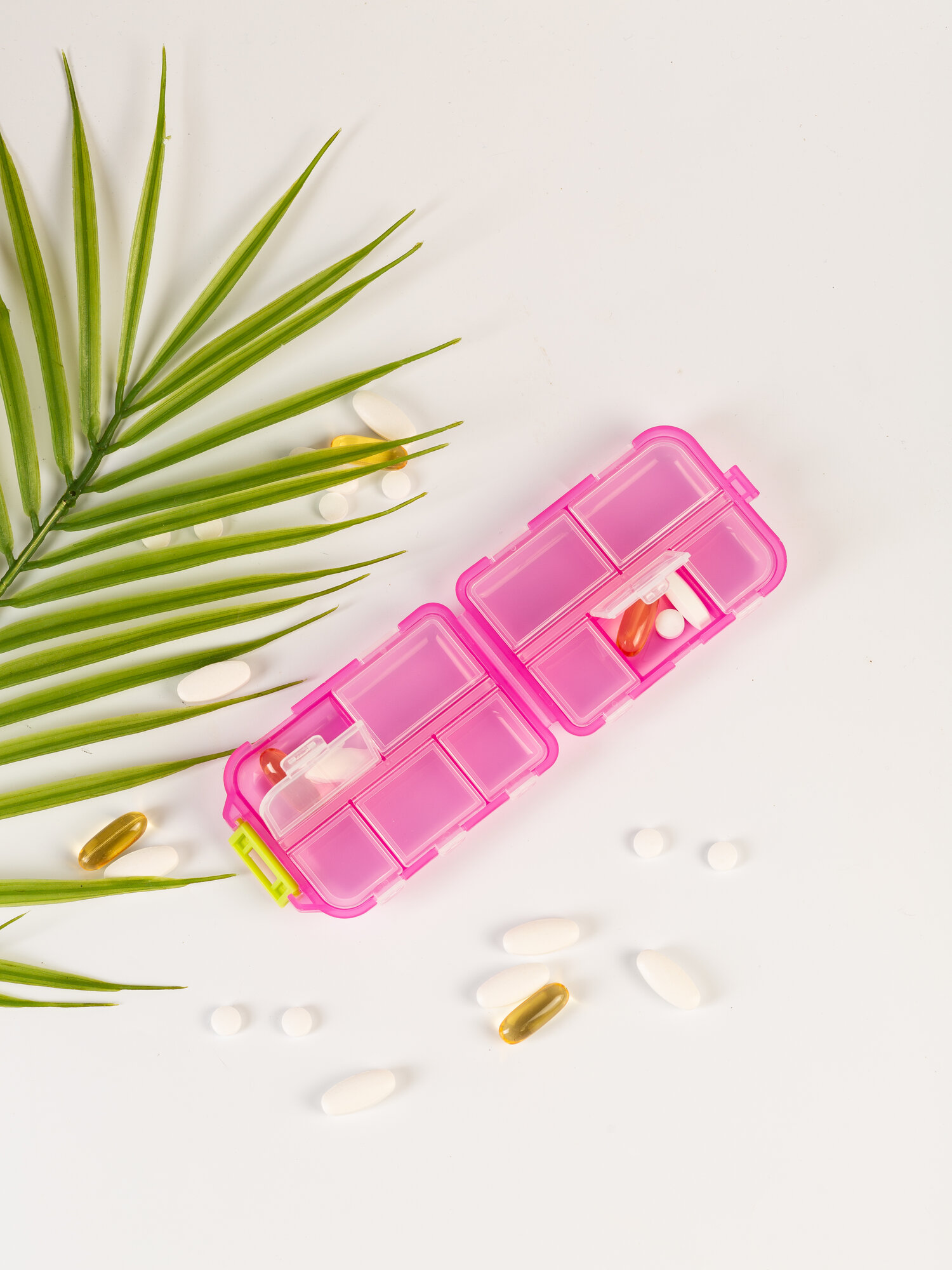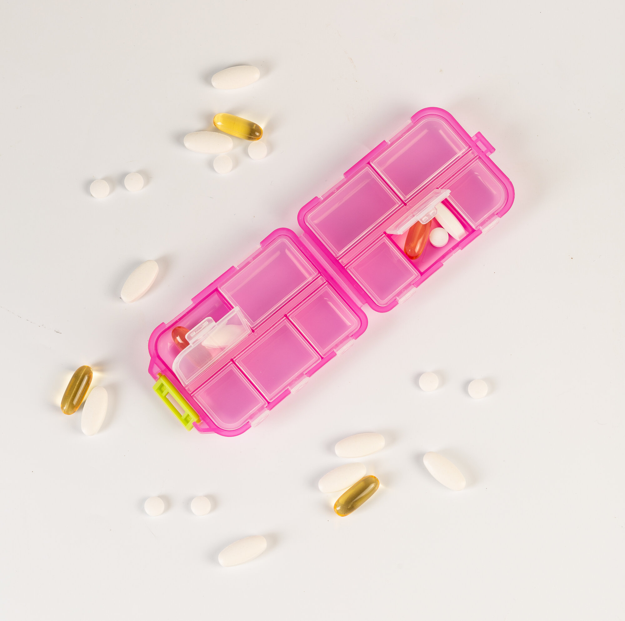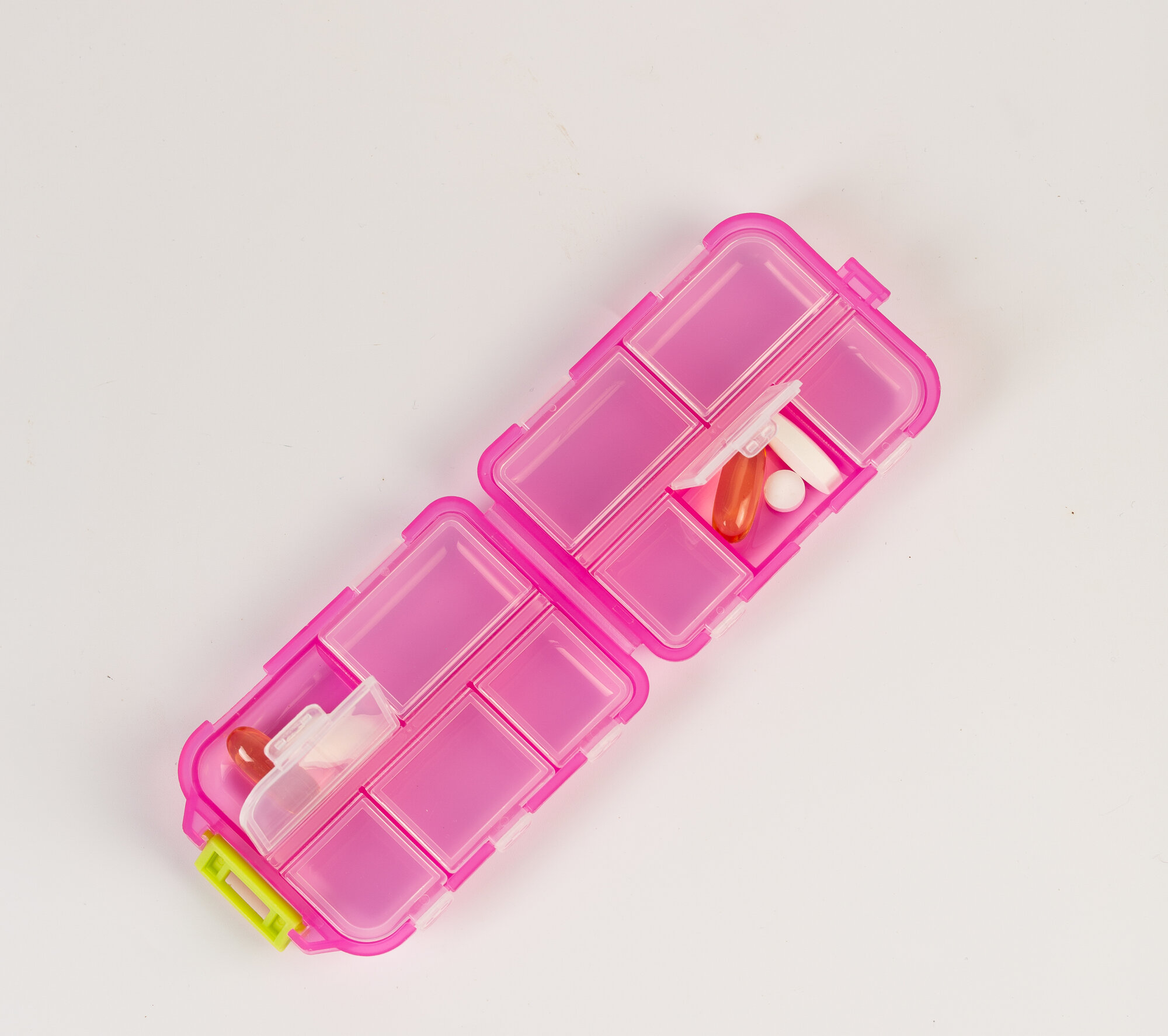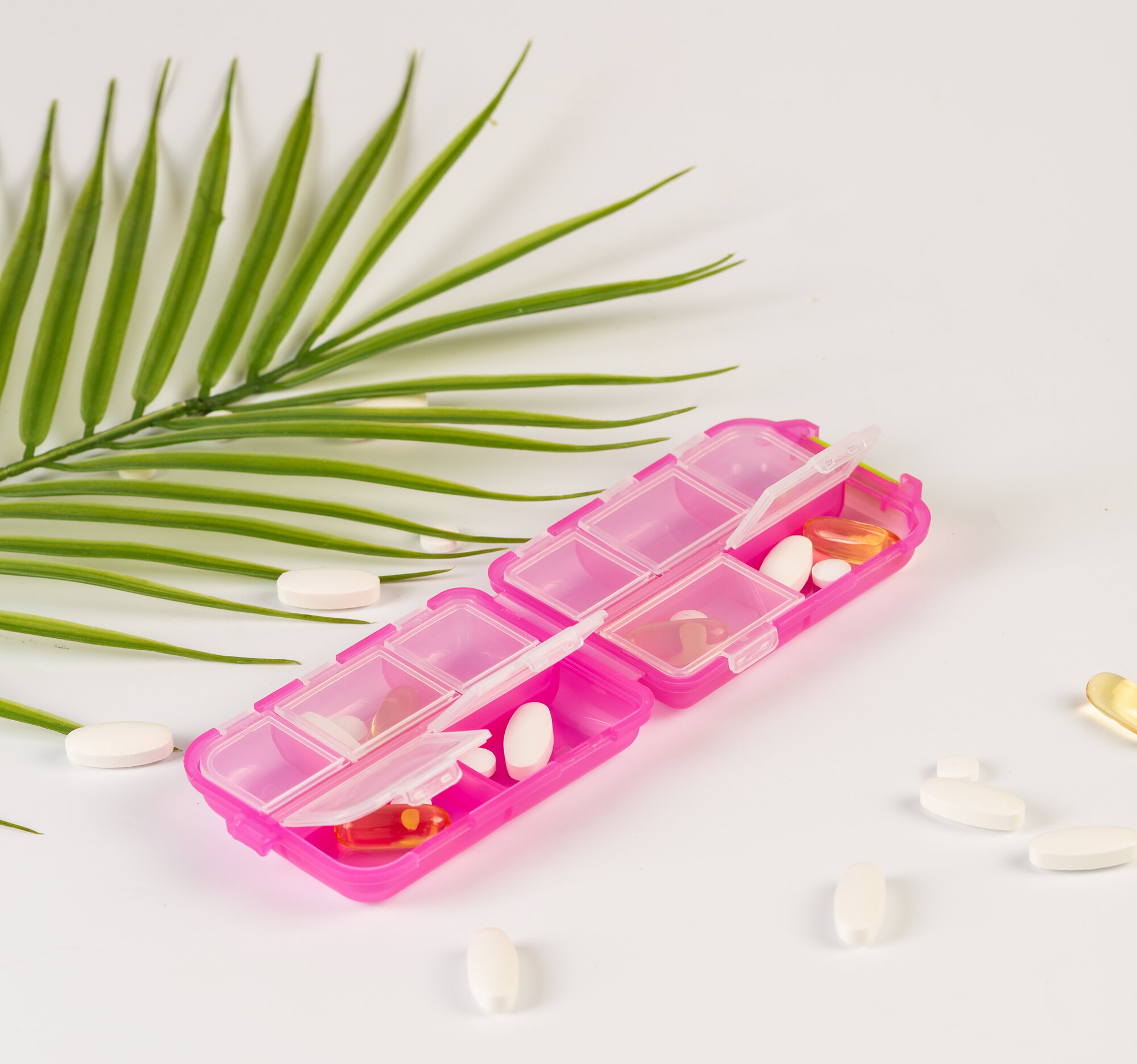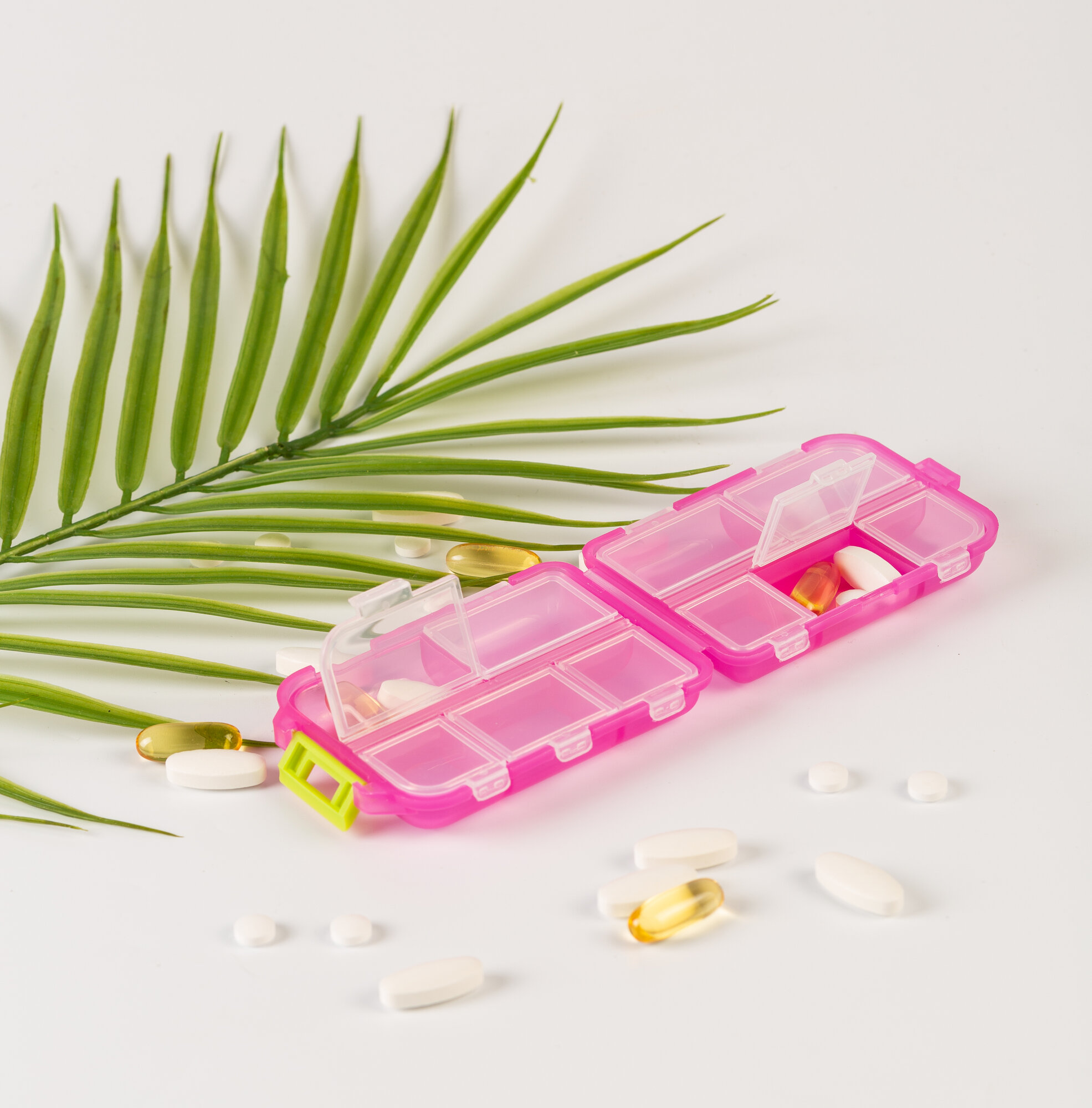 Купить Таблетница 7 дней карманная дорожная 10 отделений розовая