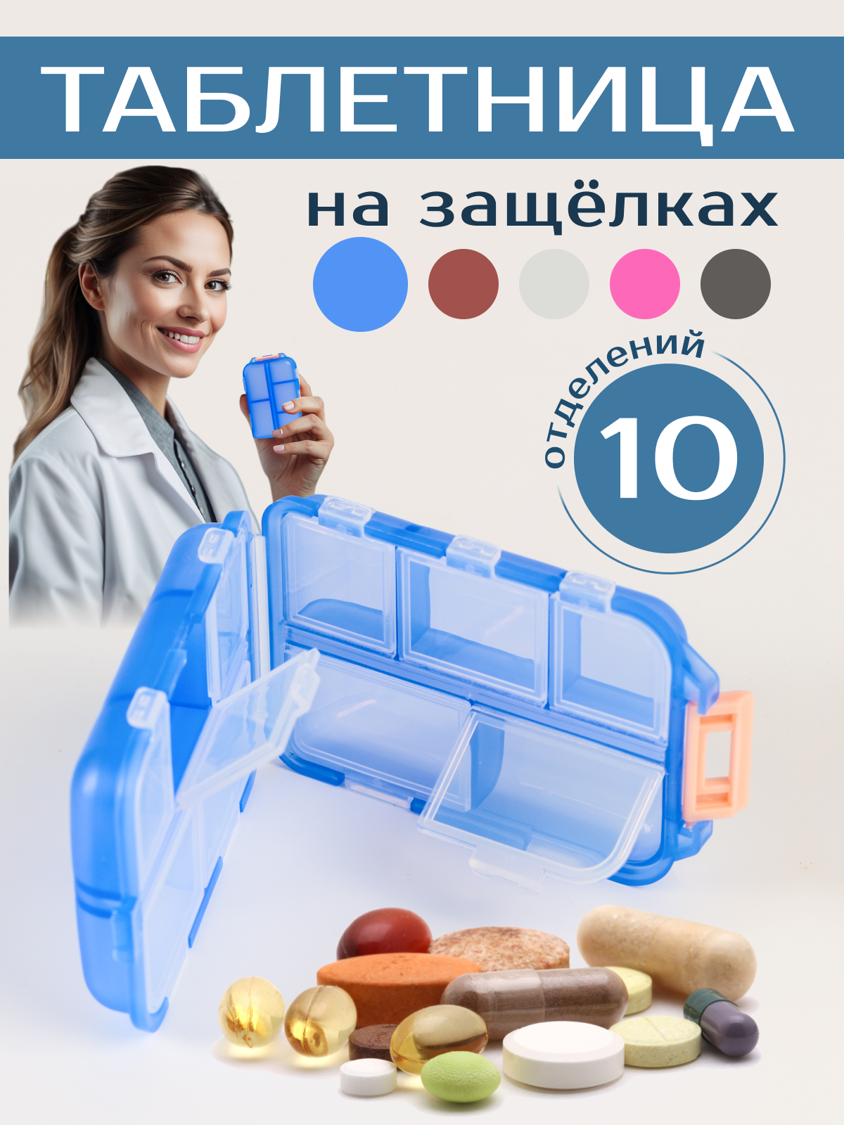 Таблетница 7 дней карманная дорожная 10 отделений синяя интересное: