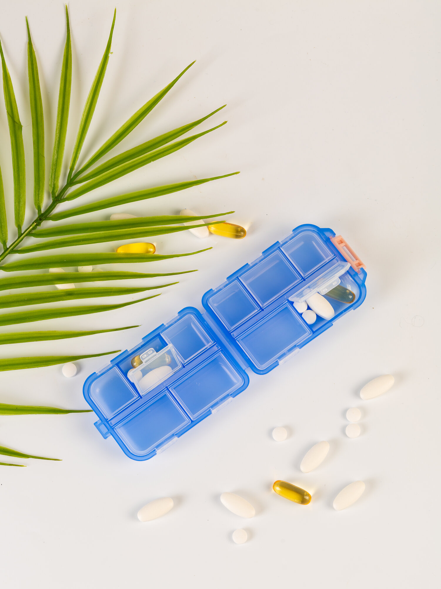 Купить Таблетница 7 дней карманная дорожная 10 отделений синяя