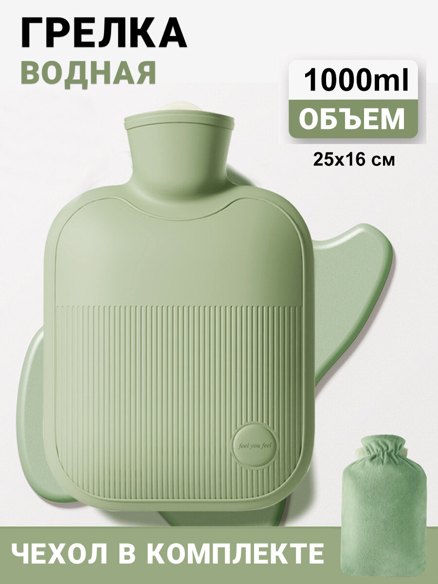 Грелка резиновая водяная многоразовая в мягком чехле Kokette 10794, зеленый, размер: 1000 мл интересное: