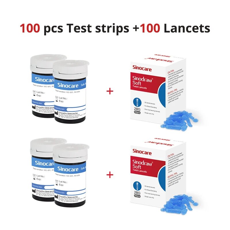 Купить Глюкометр Sinocare Safe-Accu с 50/100/200 тестовыми полосками и ланцетами, only 100 strip