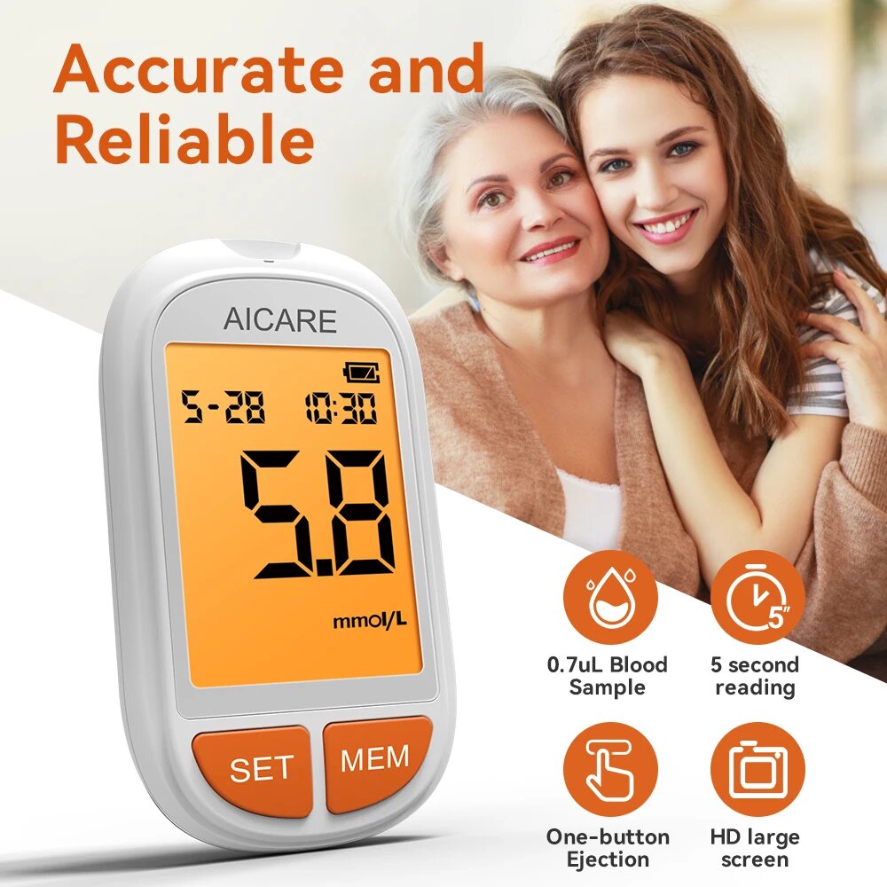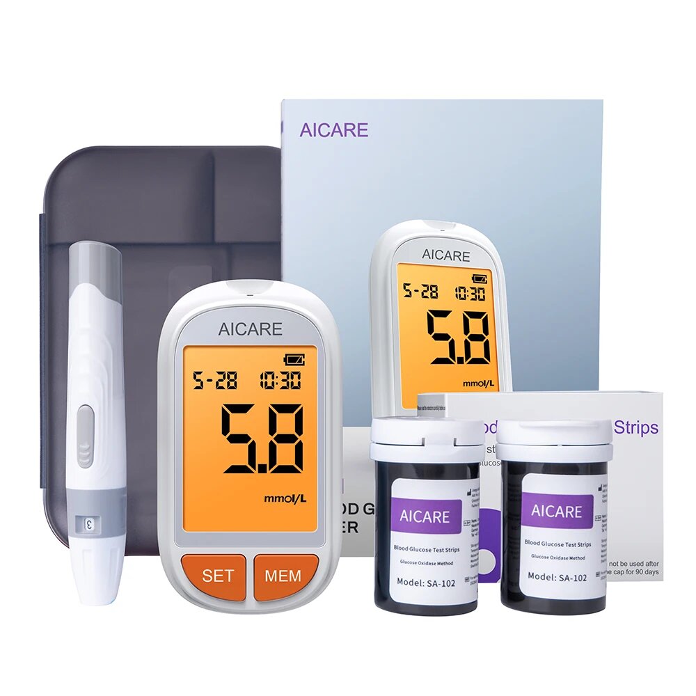 Глюкометр AICARE для измерения глюкозы в крови, 100 Meter Kit