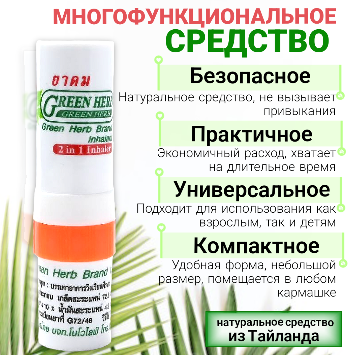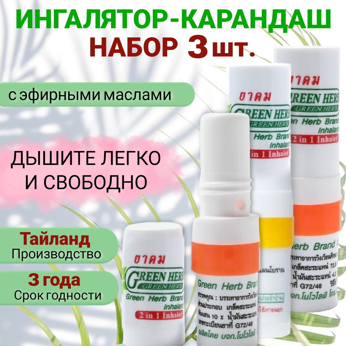 Тайский ингалятор - карандаш Green Herb 3 штуки интересное: