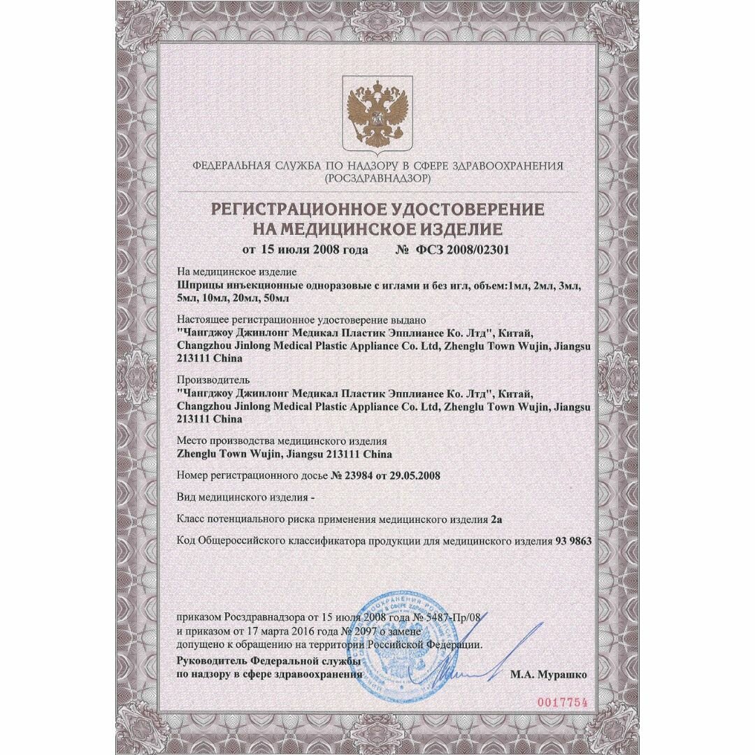 | Особенности шприца | не содержит латекс |