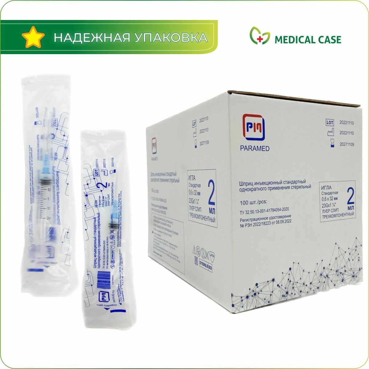 Шприцы PARAMED LUER SLIP 2 мл с иглой 23G (0,6х32) мм, 100 шт, одноразовые, стерильные интересное: