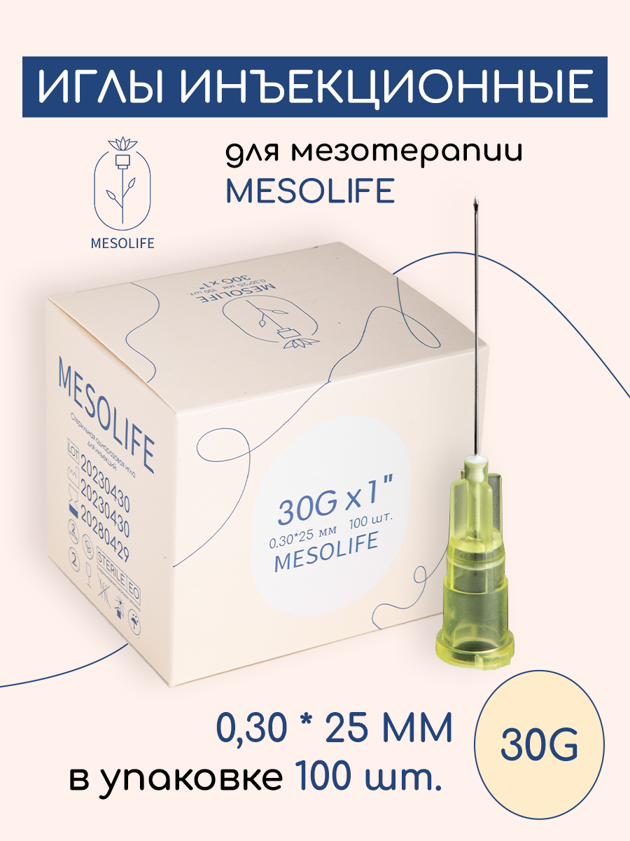 Игла для мезотерапии MESOLIFE 30G 0,3*25мм 100шт