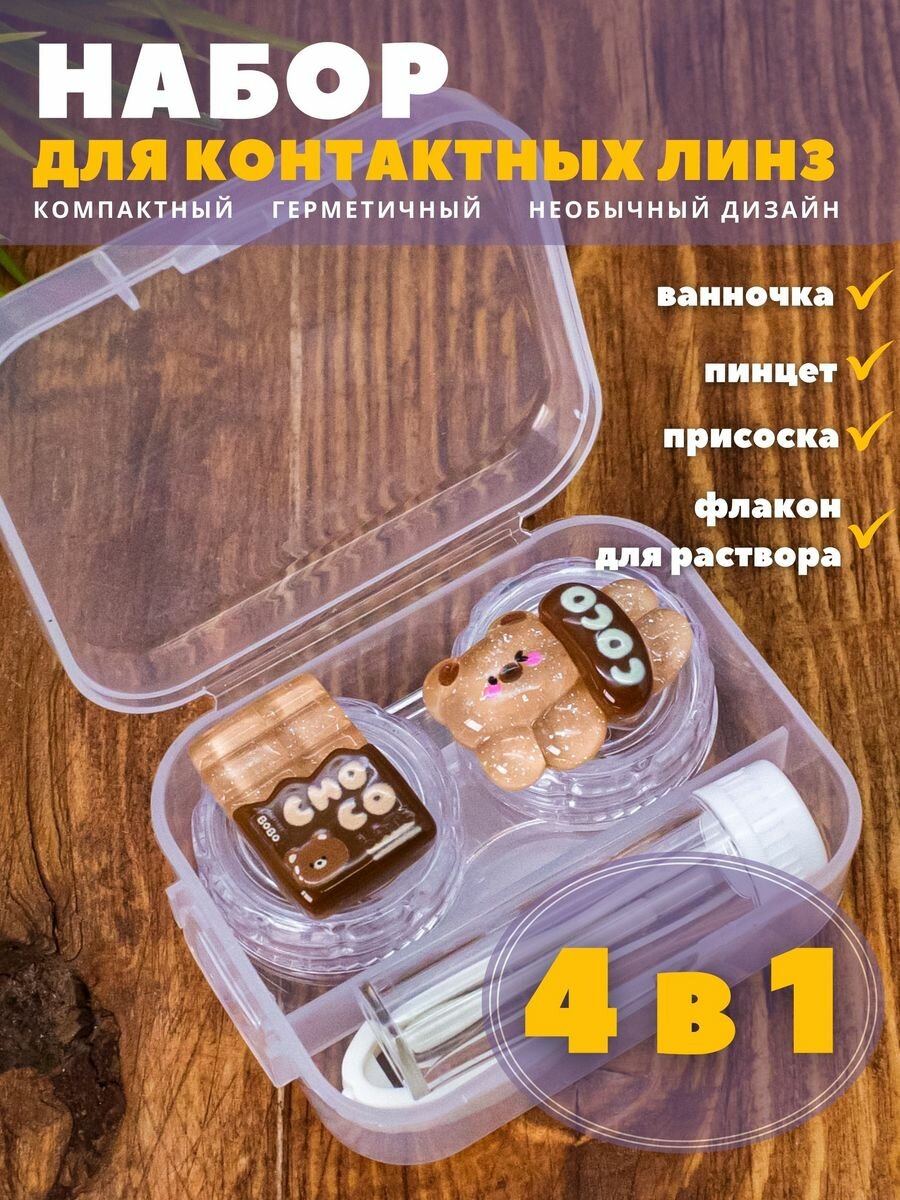 Контейнер для линз контактных, дорожный набор Sweet bear chocolate интересное: