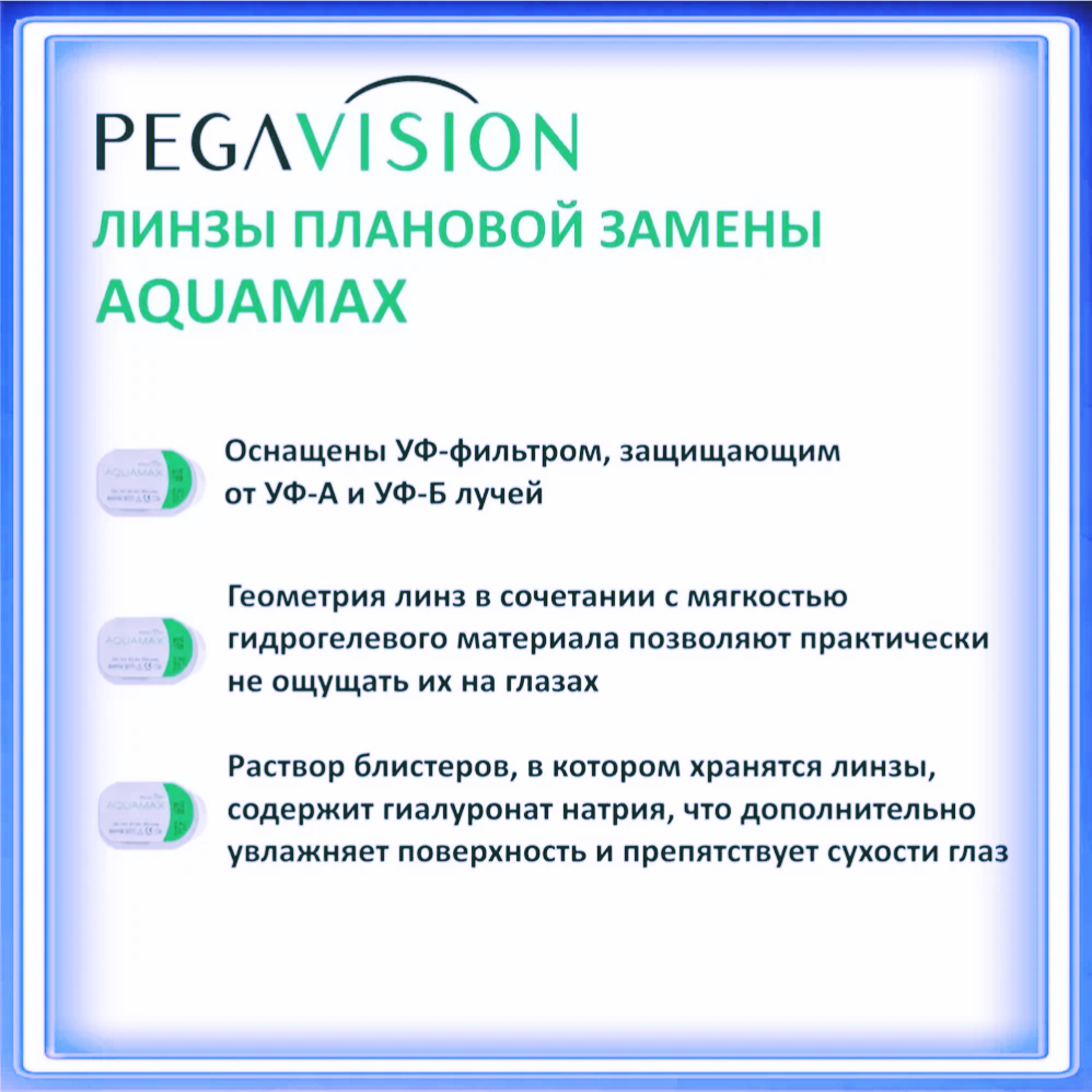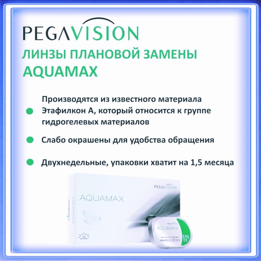 Двухнедельные контактные линзы Pegavision Aquamax 6 pk (BC 8.6; D -2.50) интересное: