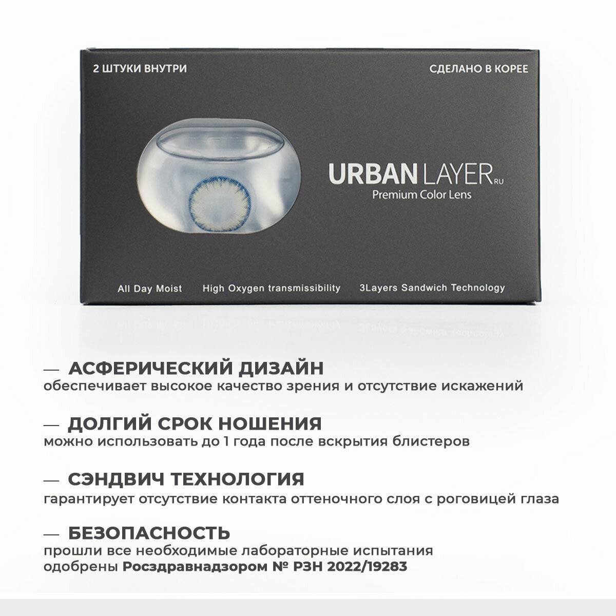 Цветные контактные линзы URBAN LAYER ru Sofia Gray -1.5 / 14.0 / 8.6 / 2шт.