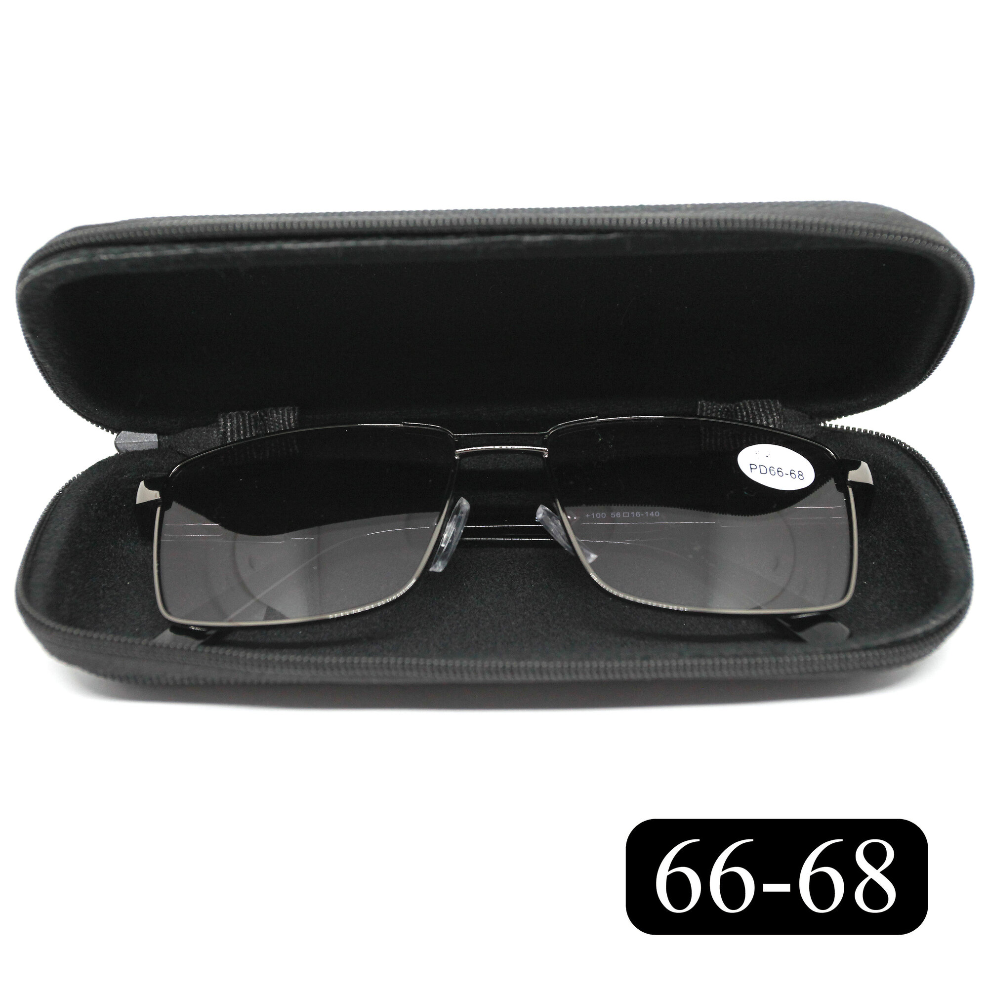 Тонированные очки 66-68 для зрения-чтения (+2.25) SALIVIO 5009 C1, цвет черный, с футляром, РЦ 66-68