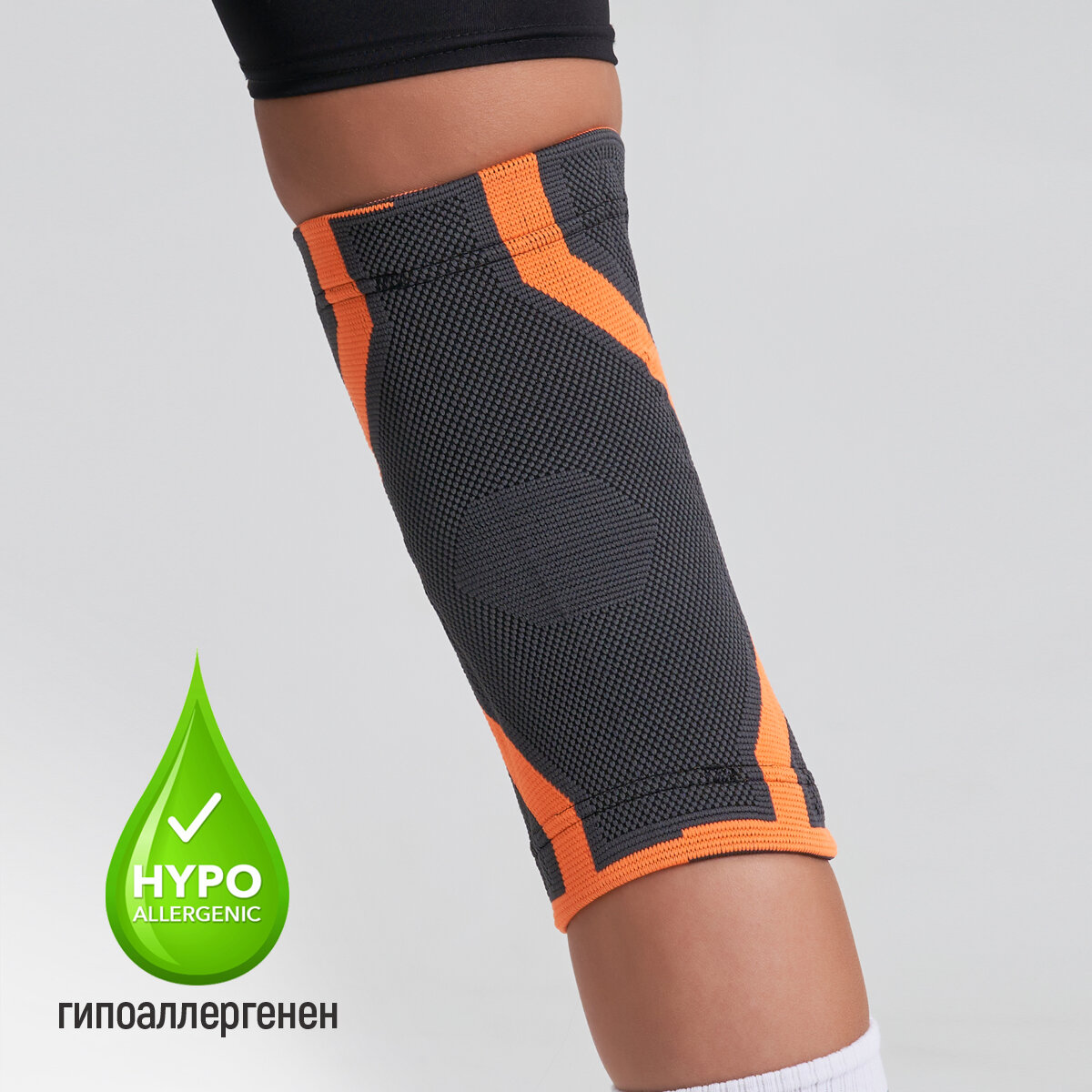 Наколенник ортопедический для суставов с ребрами жесткости и силиконовым кольцом. Бандаж на колено L