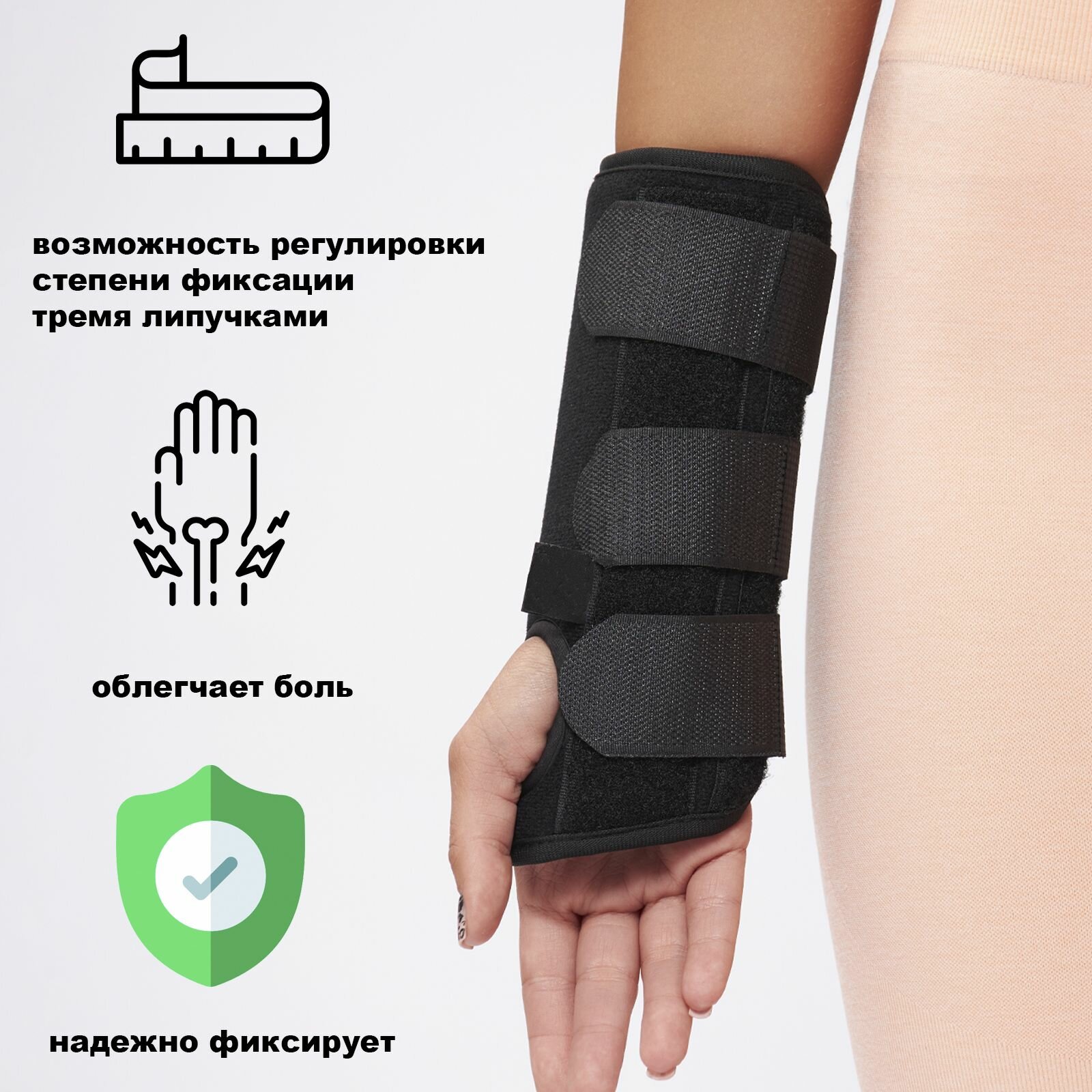 Ортез на запястье 3 металлические пластины. Размер M. Левый интересное: