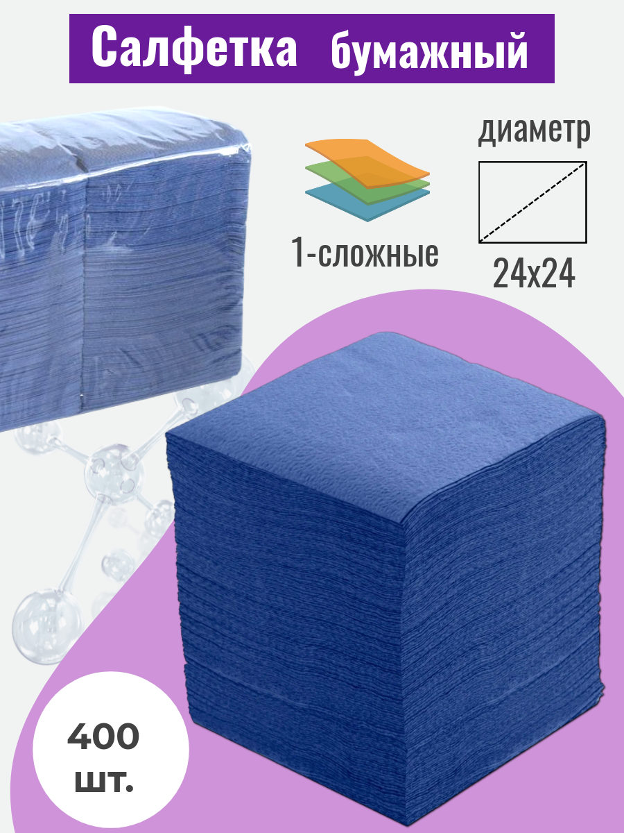 Купить Салфетки сервировочные бумажные, однослойные, 24*24, 400 шт синий