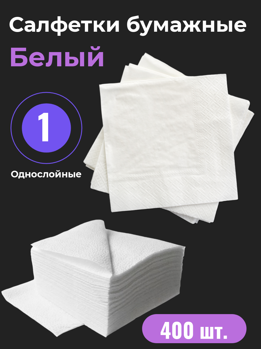 Купить Салфетки сервировочные бумажные, однослойные, 24*24, 400 шт белый