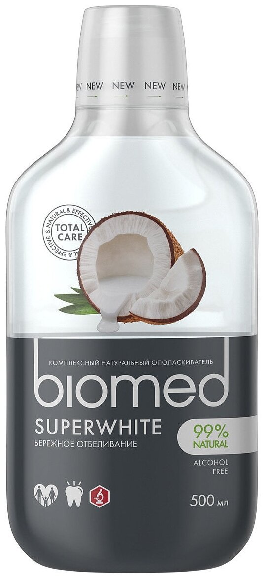 Ополаскиватель для полости рта Biomed Superwhite, кокос, усиливает отбеливающие свойства зубной пасты, 500 мл интересное: