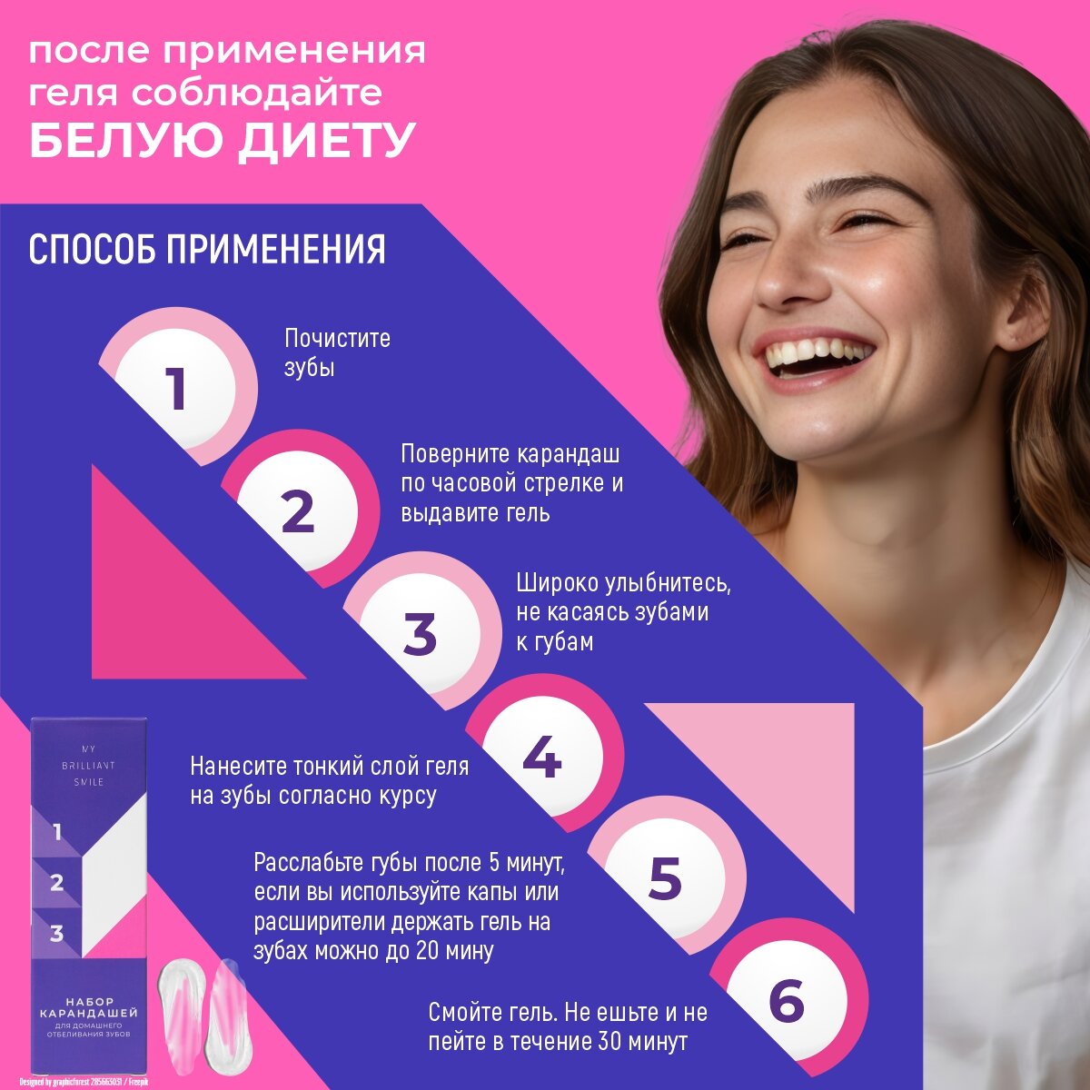 Карандаши для домашнего отбеливания зубов MY BRILLIANT SMILE с PAP гелем, 3 шт интересное: