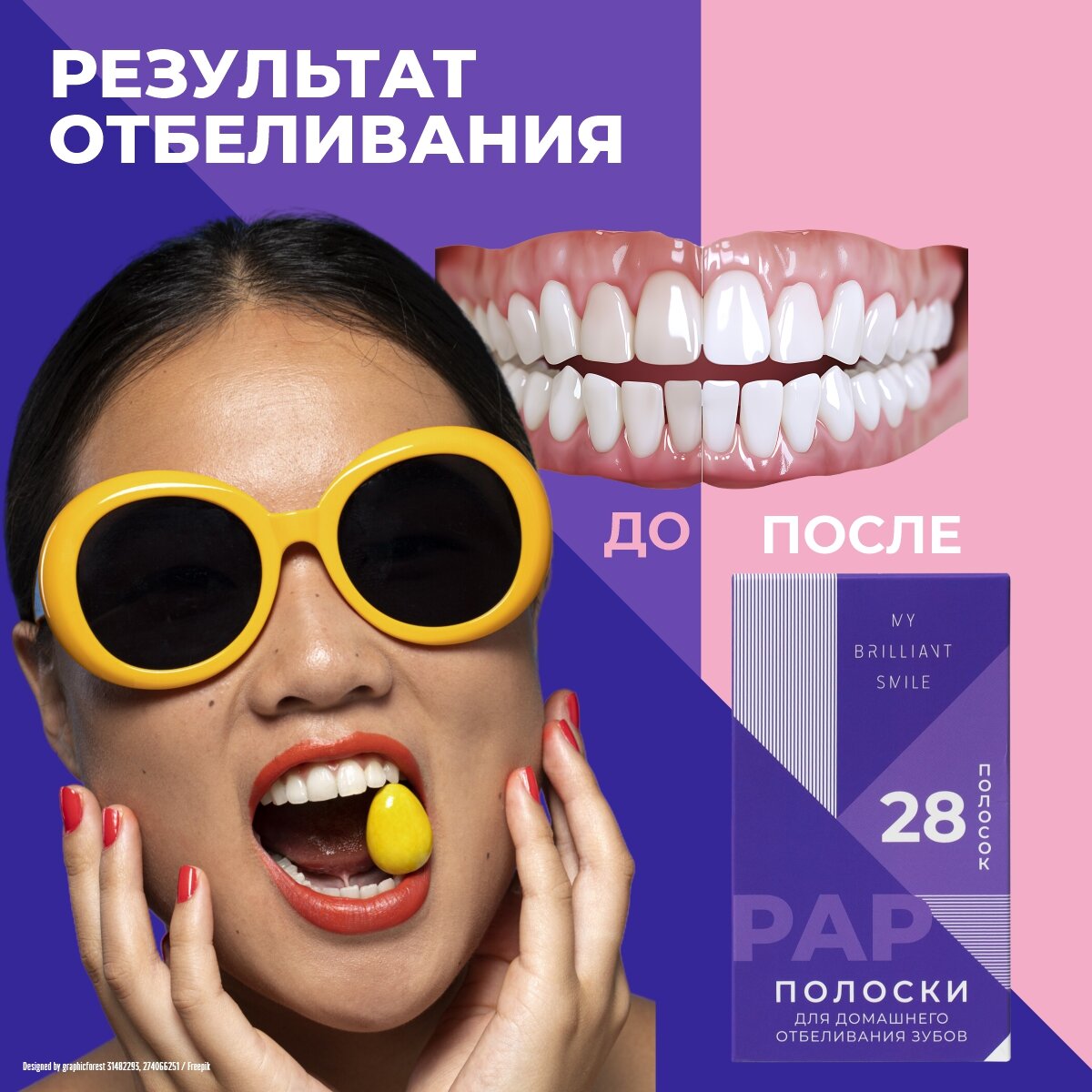 Отбеливающие полоски My Brilliant Smile PAP для зубов, 28 штук интересное: