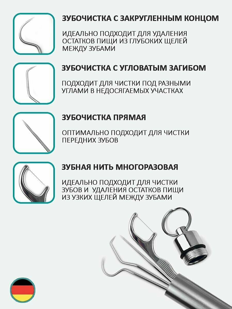 Набор для чистки зубов / флоссер с зубной нитью / 4 зубочистки и брелок для ключей интересное: