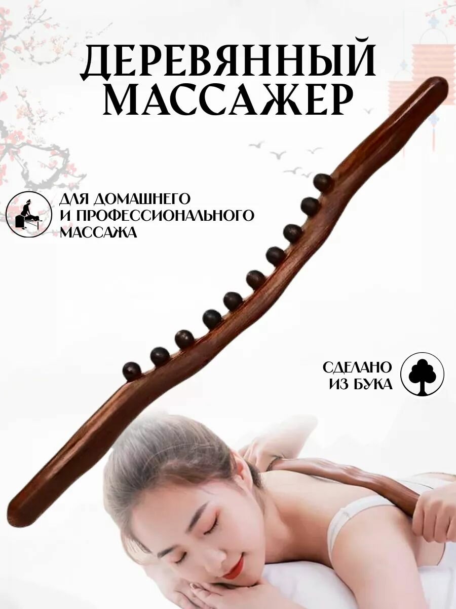 Купить Массажная палка Гуаша 10 шарик дерево бук лимфодренажная для похудения тела живота спины шеи