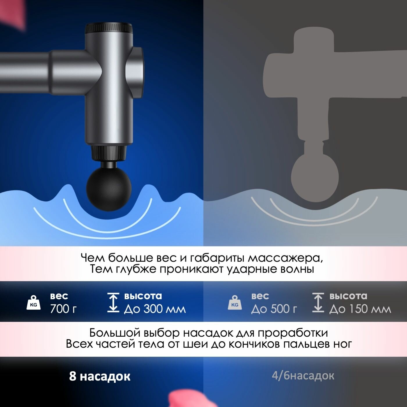 | Вид массажа | акупунктурный / вибрационный / комбинированный / перкуссионный / расслабляющий |