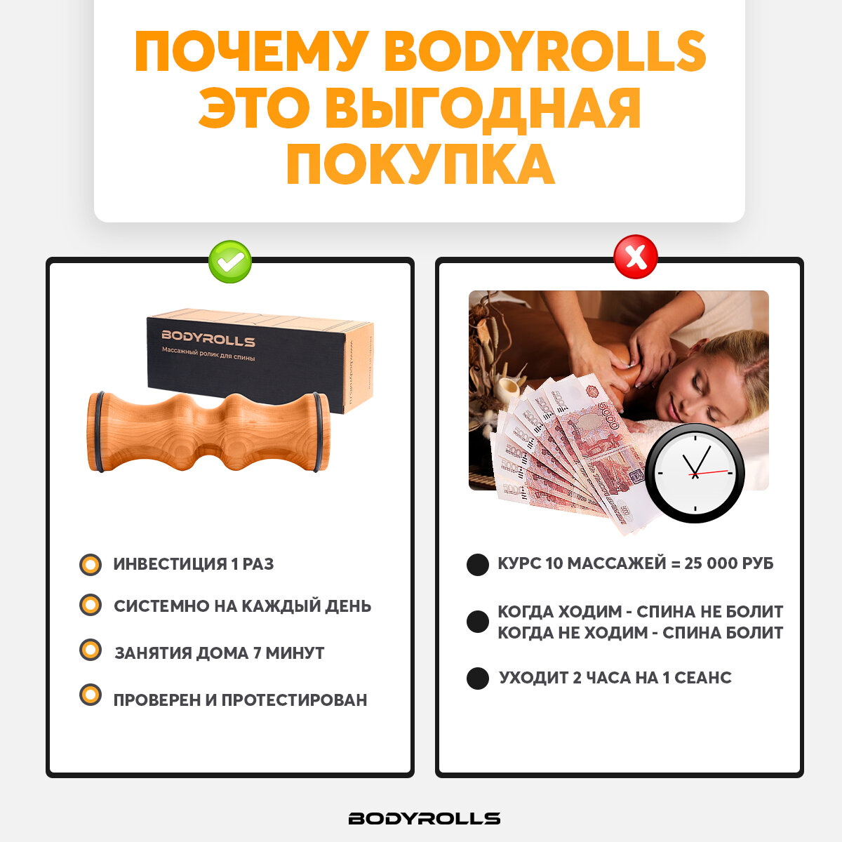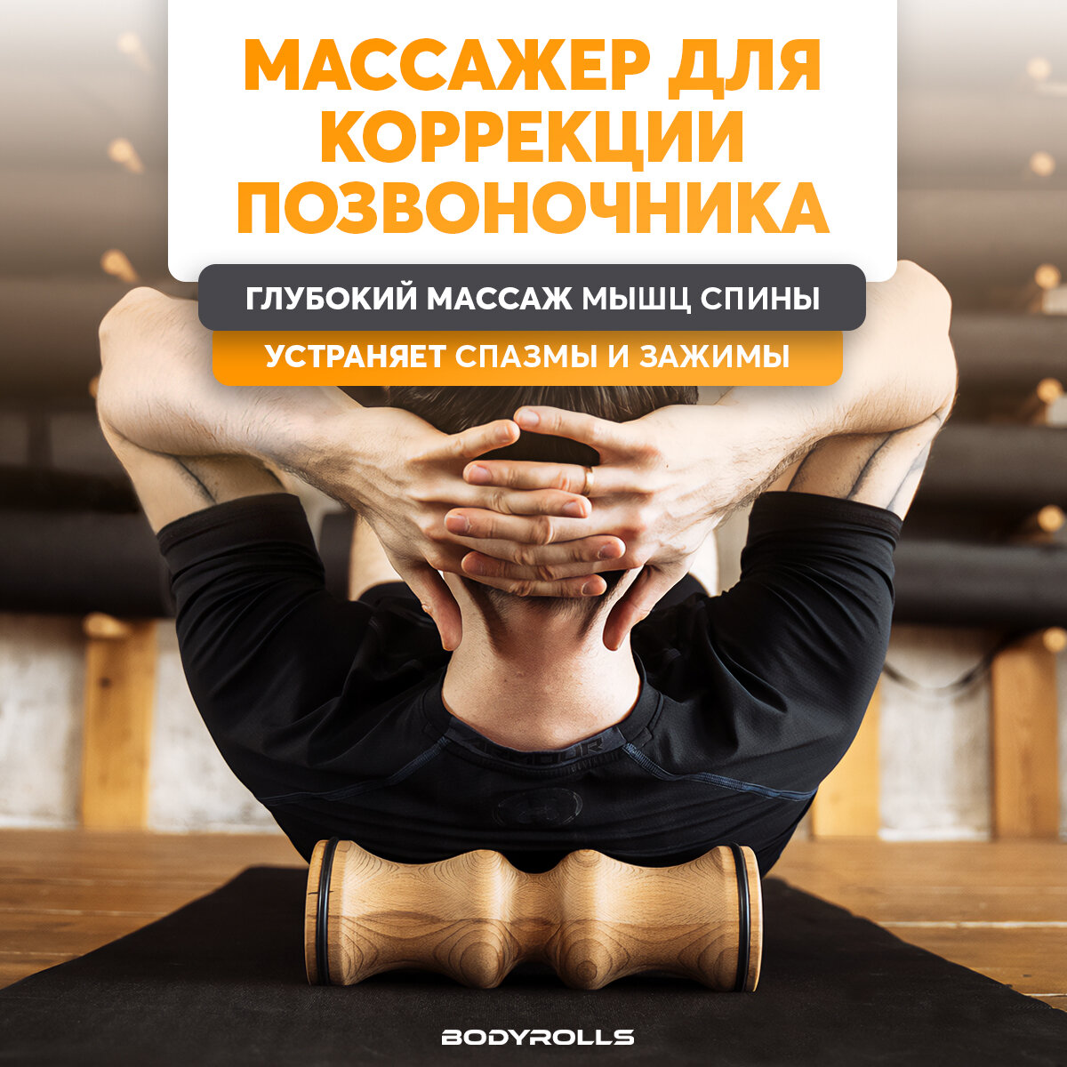 Массажный ролик BODYROLLS серии HARD, модель SLIDE для коррекции позвоночника и МФР деревянный интересное:
