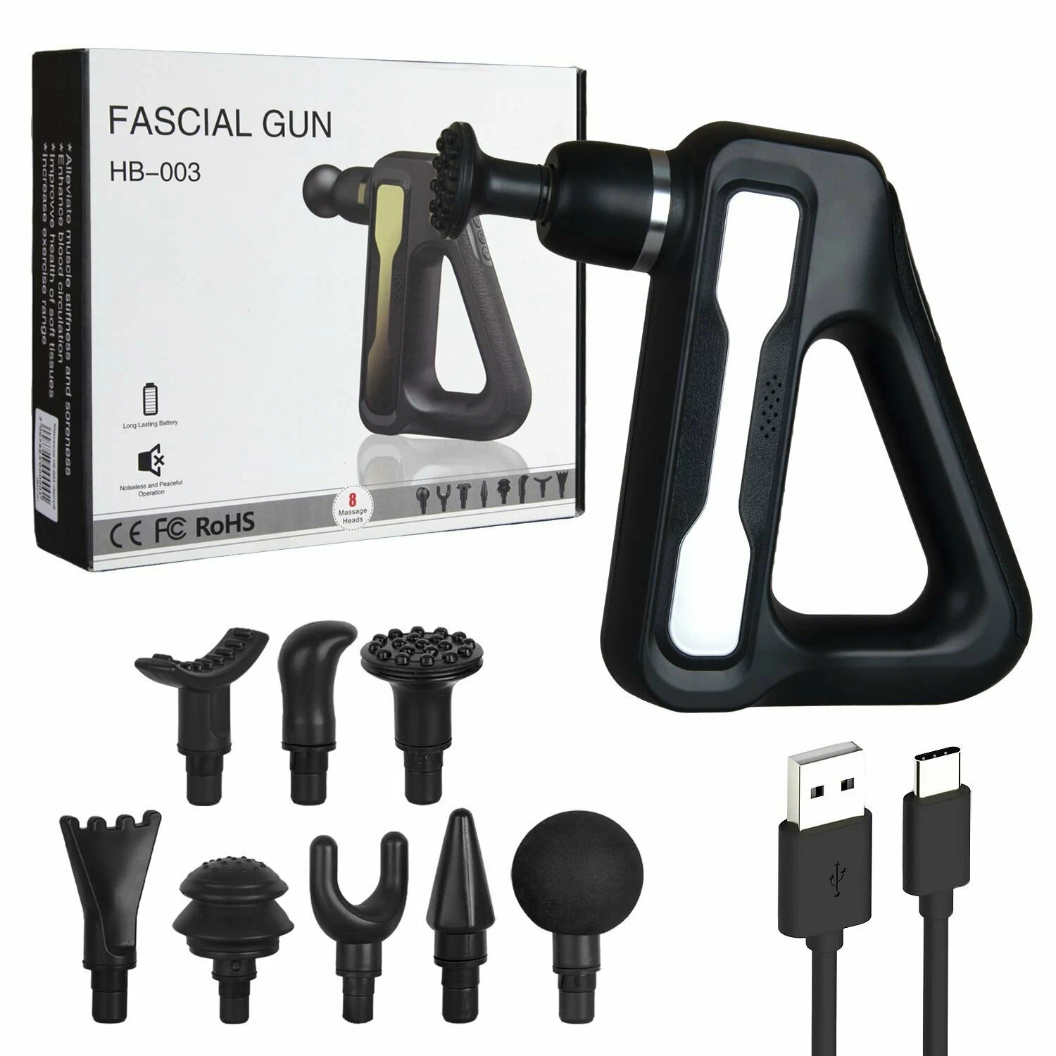 | Подробная комплектация | Массажёр HB-003, 8 сменных насадок, провод для подзарядки от USB, инструкция, коробка. |