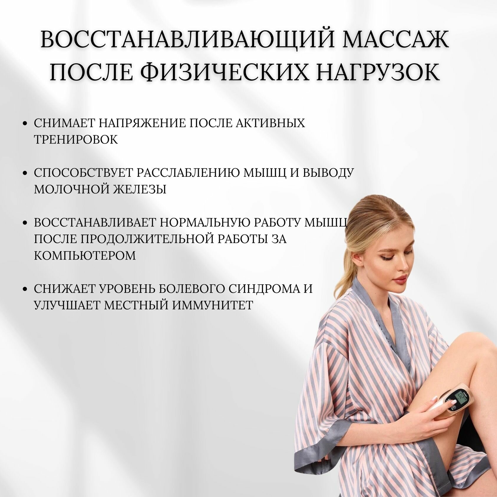 | Зона массажа | бедра / голени / грудная клетка / декольте / живот / ноги / плечи / поясница / руки / спина / талия / тело / ягодицы |