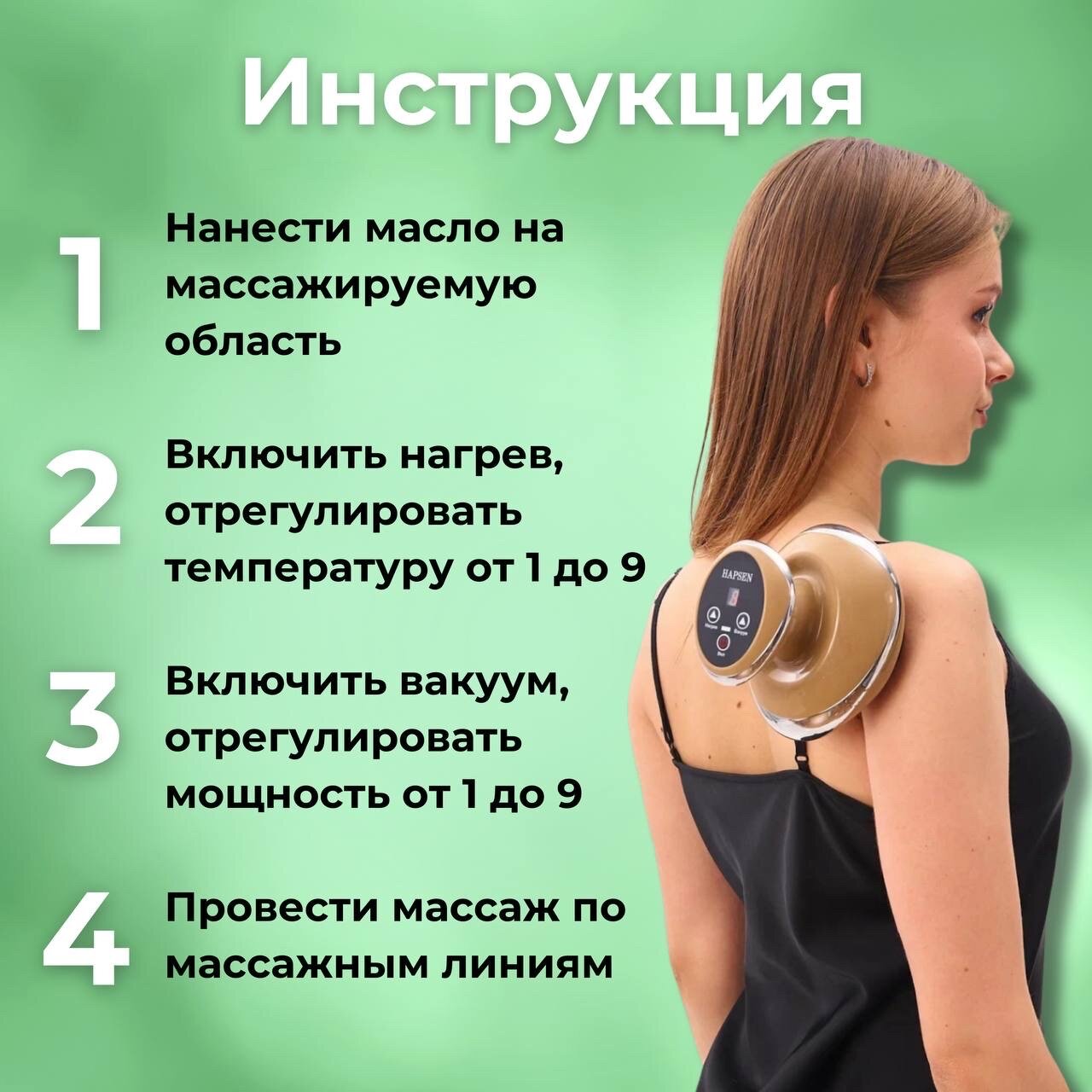 Вакуумный антицеллюлитный массажер для тела с функцией нагрева, 24 режима, HAPSEN